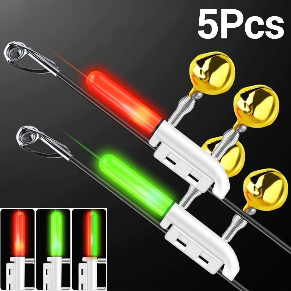 5Pcs Fishing Light Stick Rod Bell LED Fishing Rod Tip Light USB Charge Luminous Tackle Night Bright Lamp Tools Fish Bite Alarm