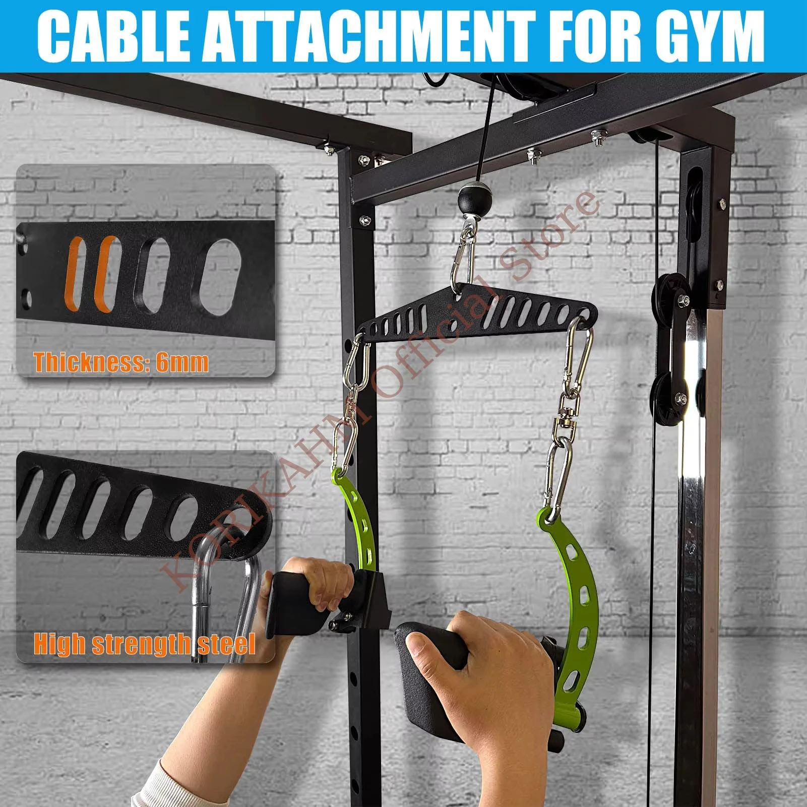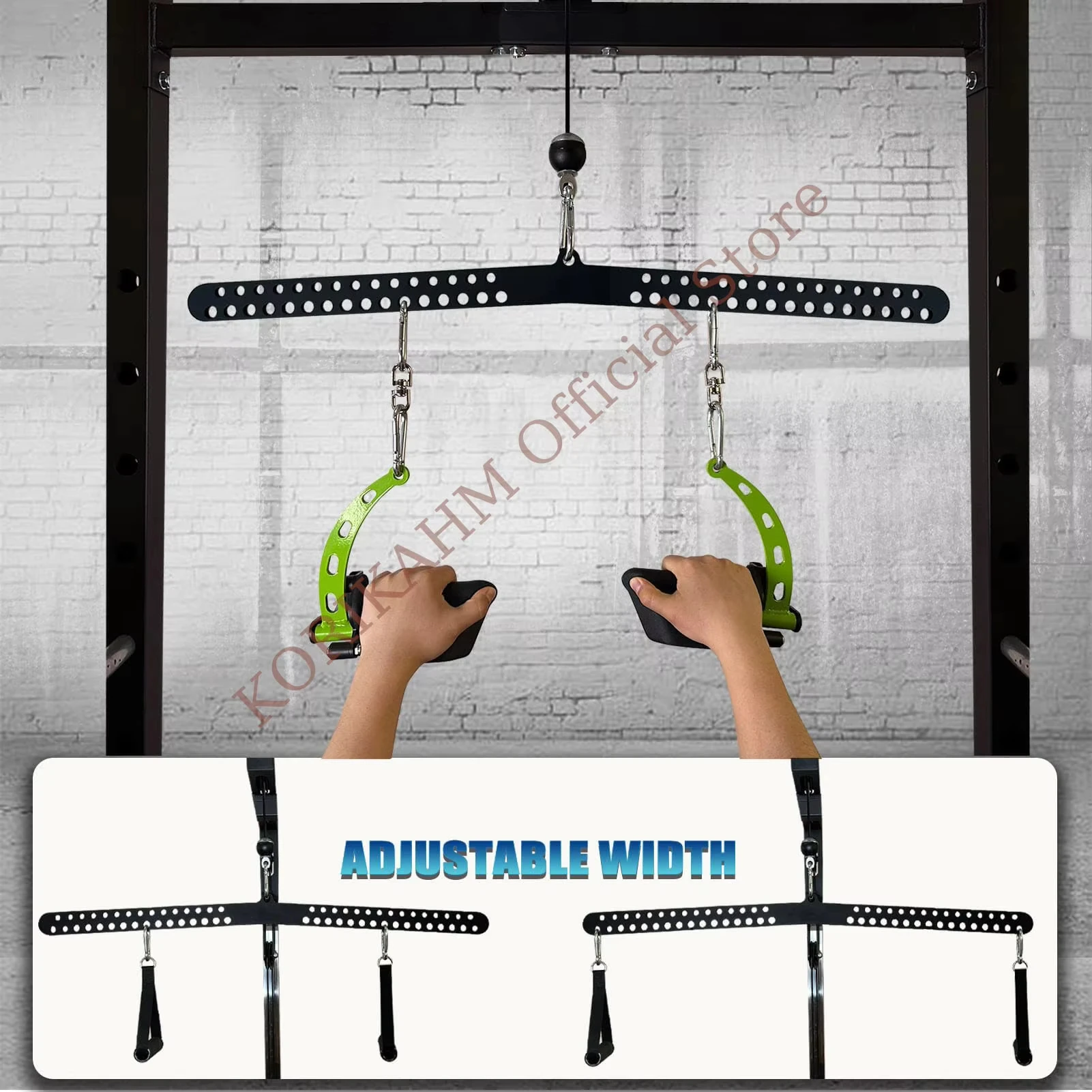 Esta barra tensora puede conectar fácilmente algunas manijas y es una buena adición al gimnasio en casa.También se puede conectar a una máquina de cable simple o doble.