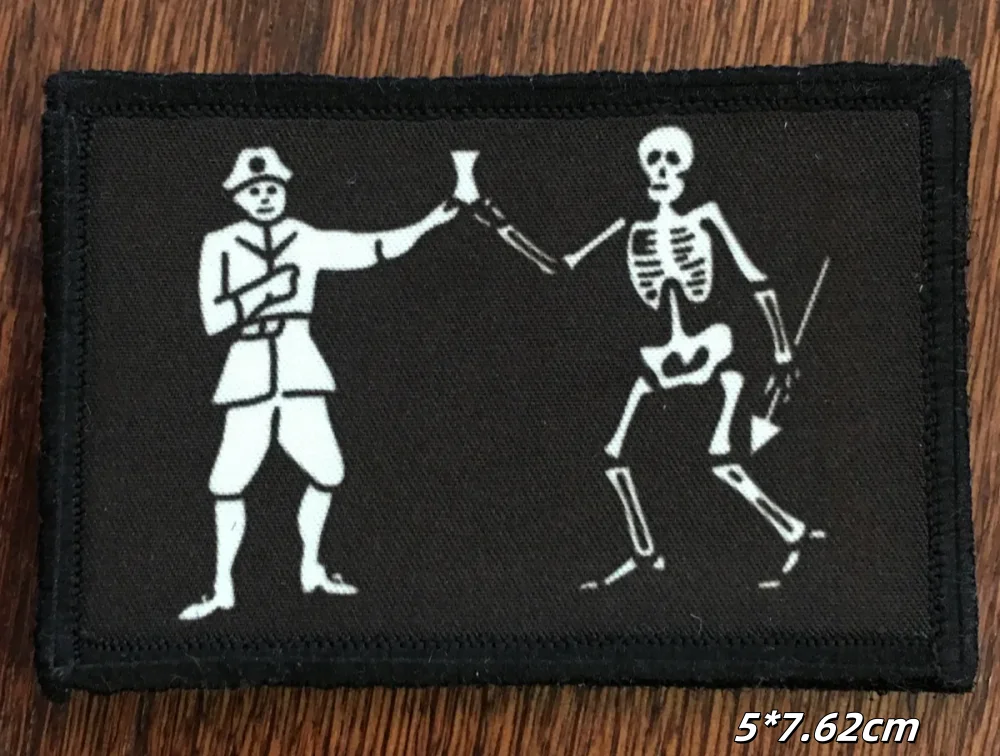 Bartholomew Roberts Pirate Flag Morale Badge Tactical Print Hook&Loop Emblem Military Black Sails Army Backpack Armband Stickers
