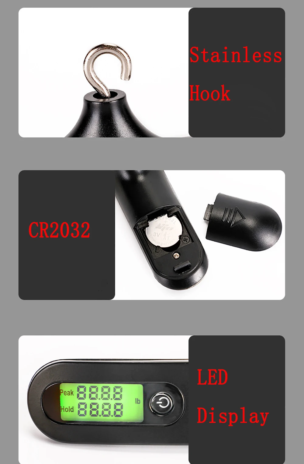 Mide el peso máximo o el peso sostenido; proporcionando peso preciso, máx.puede alcanzar 110 libras/50 kg