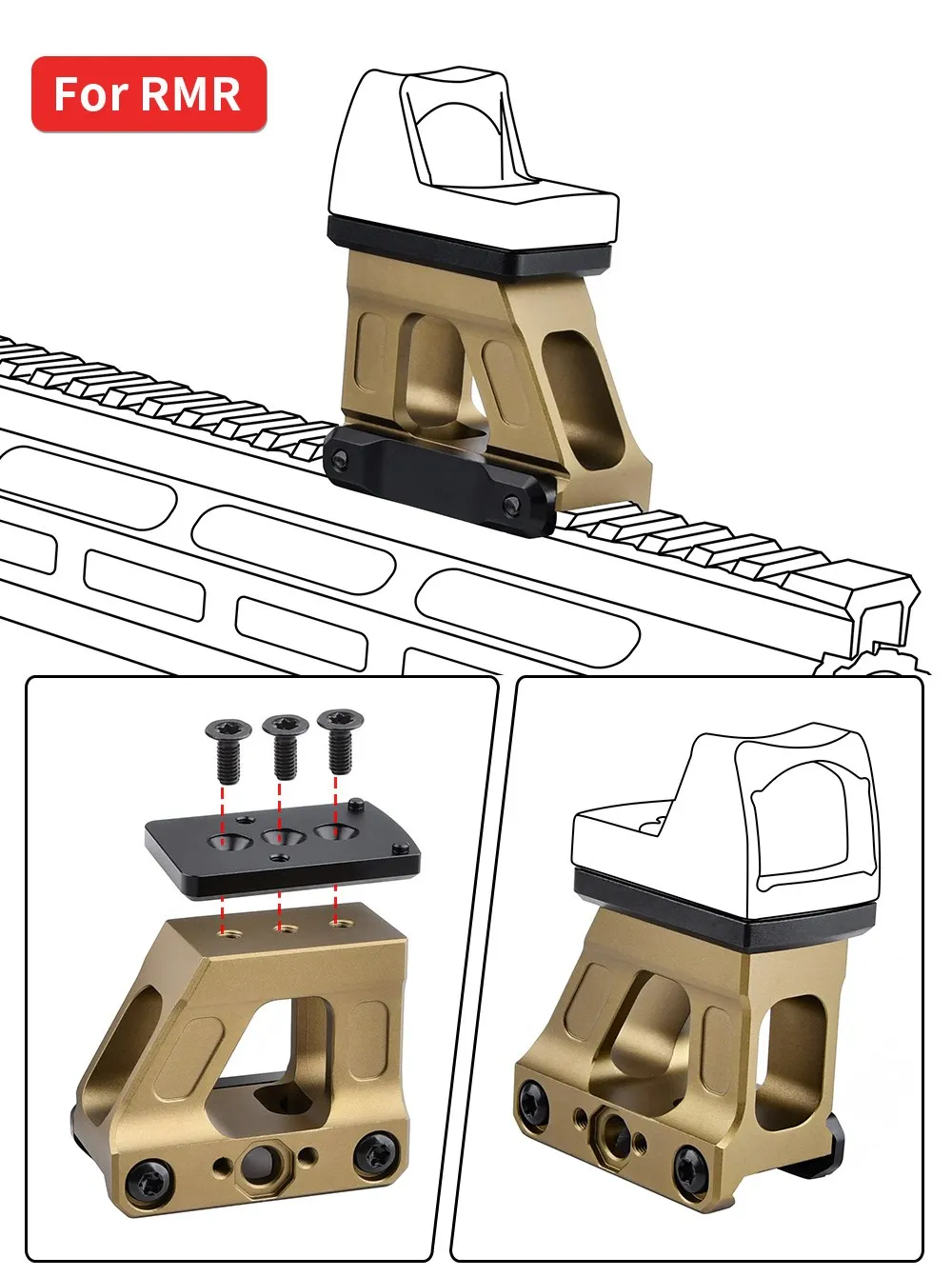 Base Elevada Metálica Táctica WADSN FAST para Mira de Punto Rojo RM - Montura Óptica Compatible con Riel Picatinny 20mm - Accesorio para Caza y Reconocimiento