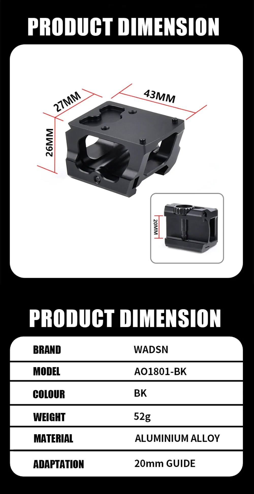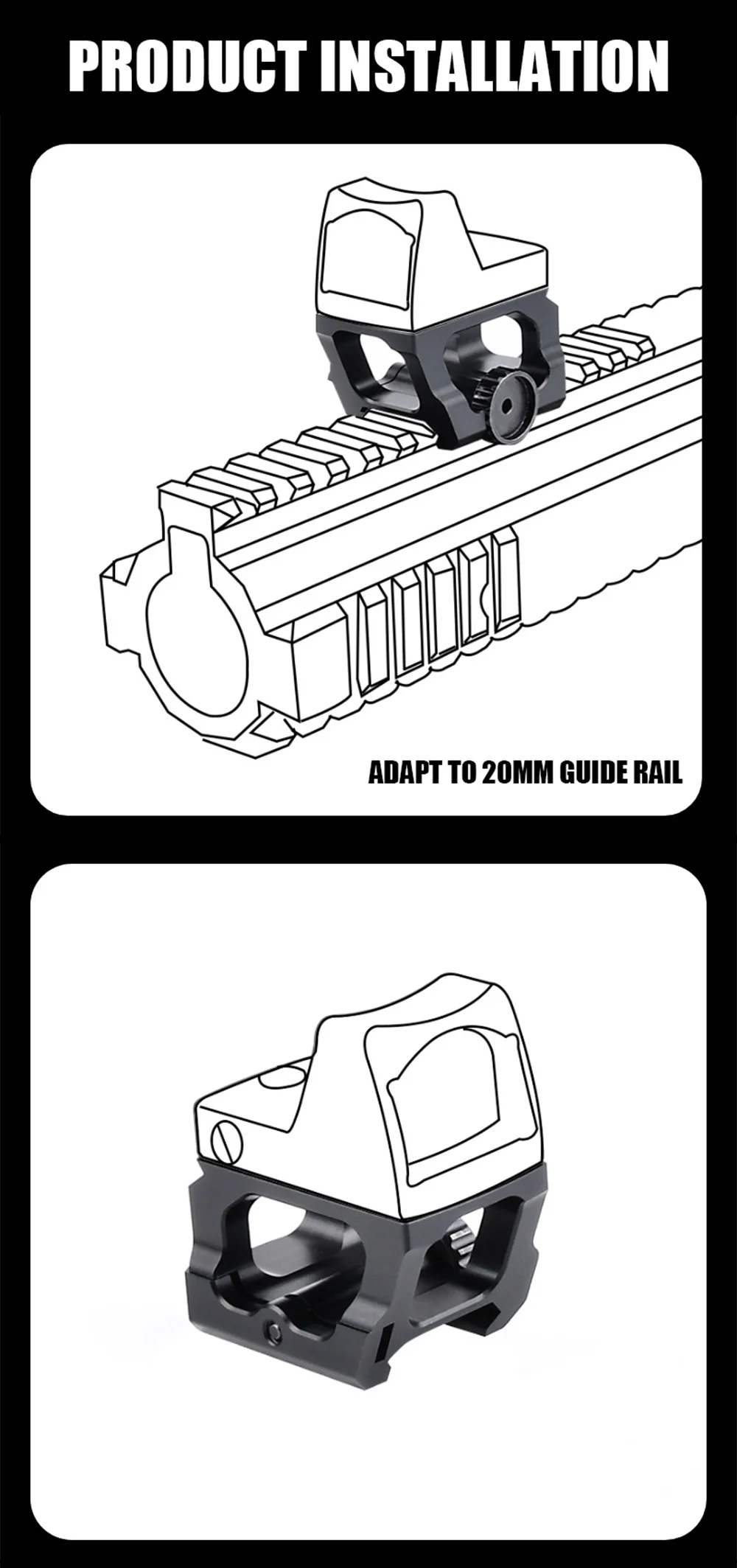 Base elevadora de mira táctica, Base de montaje de Metal, accesorio de punto rojo compatible con riel de 20mm, alcance de caza, puntería Airsoft LEAP 04