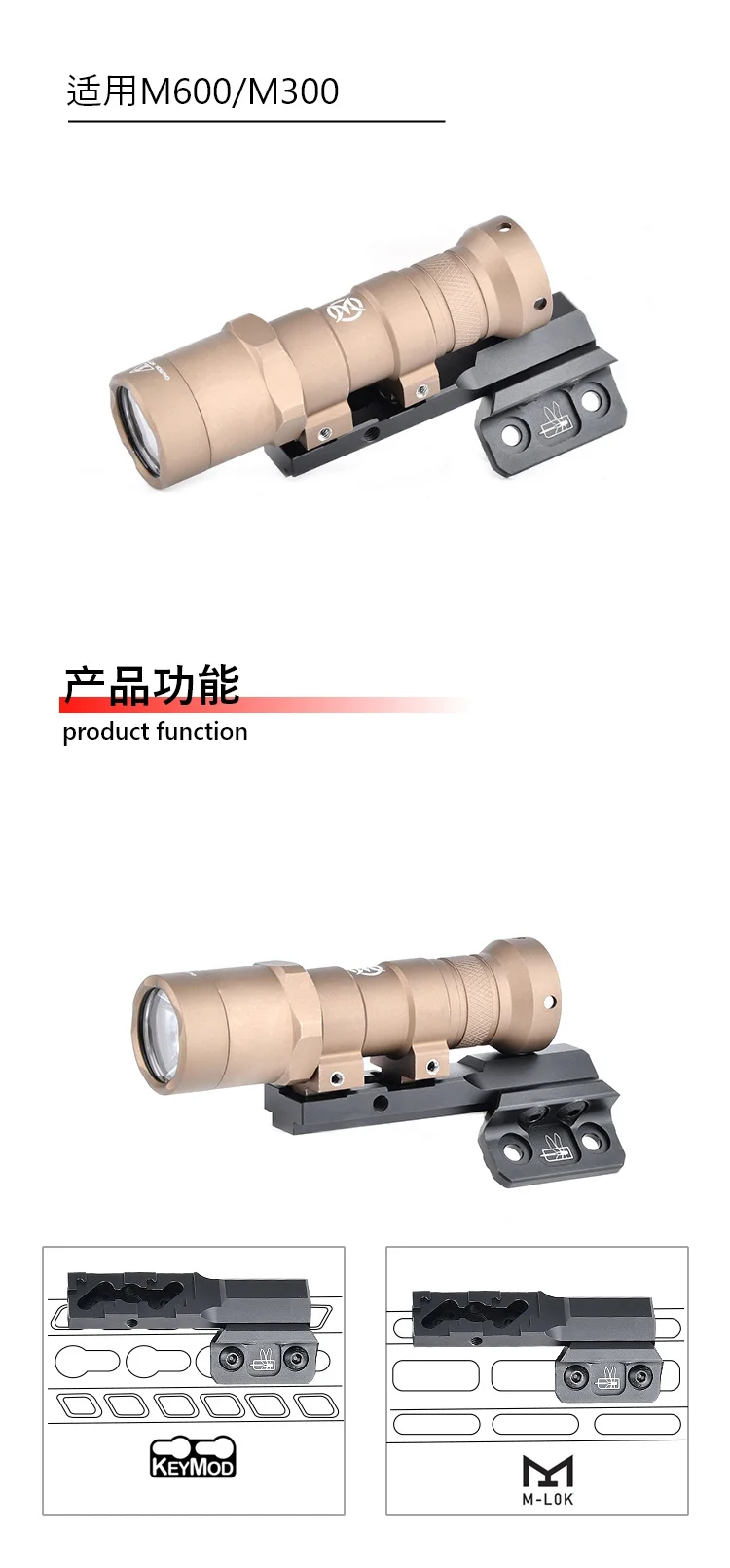 Base de linterna Universal, soporte de fijación de extensión lateral, Metal, edición Mlok M300 M600