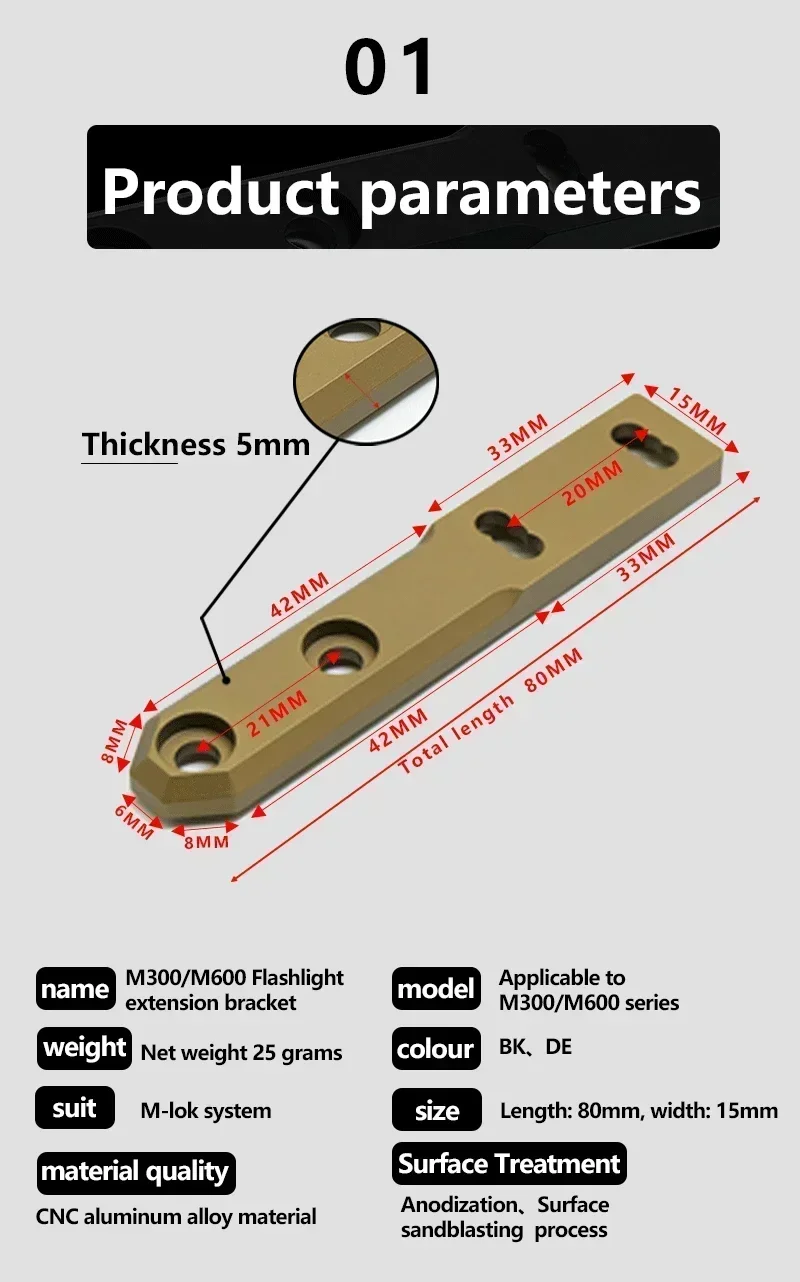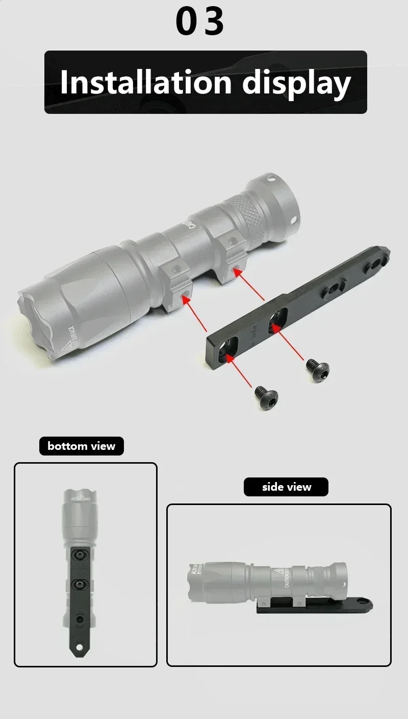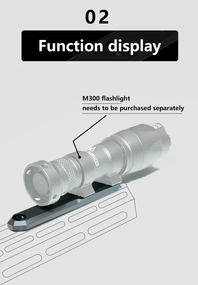 Base de luz táctica de Metal Weapo, luz LED de explorador Airsoft, montaje en línea compatible con sistema MLOK para linterna para exteriores SF M300 M600 PLHV2