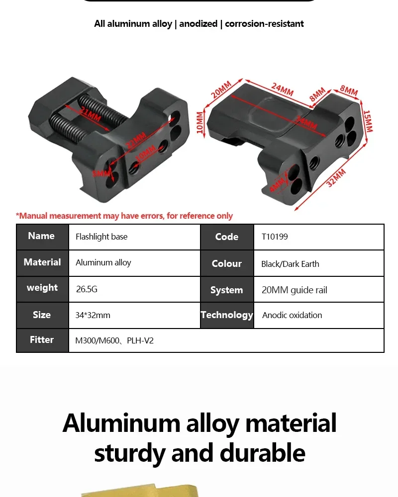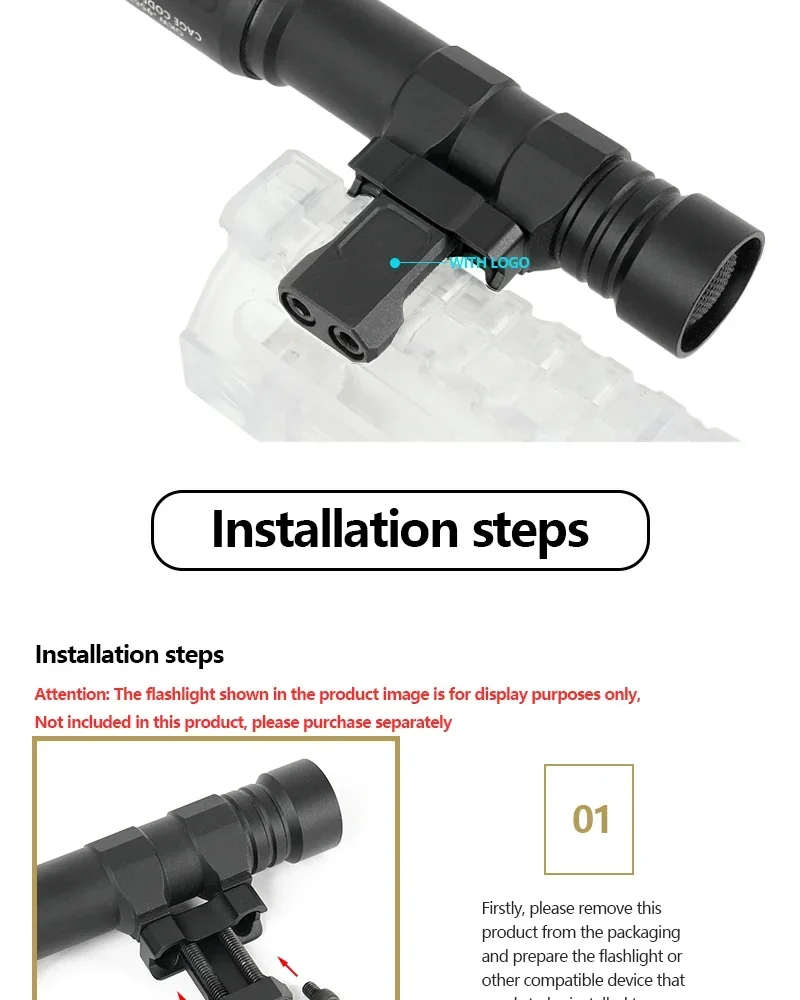 Base de montaje para linterna táctica M300/M600, soporte de luz de explorador, desmontaje y instalación simples y rápidos, Base de montaje compensada