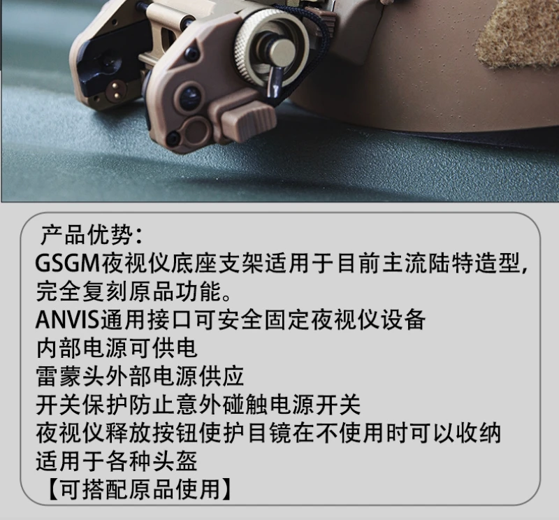 Contenido: soporte GSGM (no incluye casco/dispositivo de visión nocturna, etc. que muestra el efecto de los productos a juego).