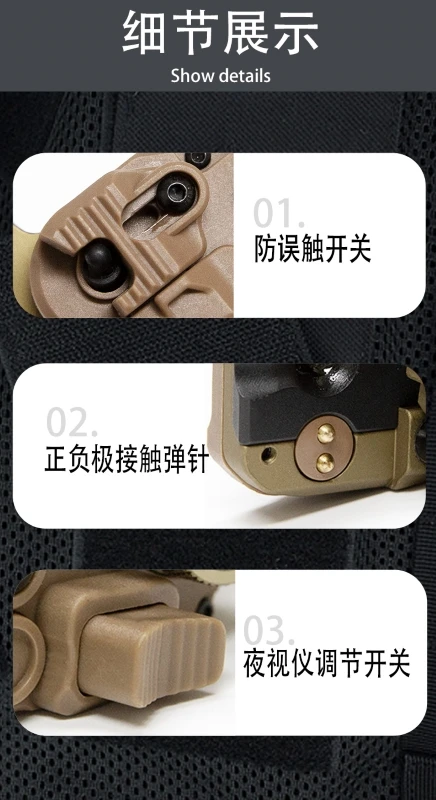 Descripción: GSGM es un soporte funcional, usando una batería CR123A (solo puede usar una batería 3V, no puede usar una batería recargable 3V). Al mismo tiempo, la fuente de alimentación principal, además de admitir el uso de fuente de alimentación de reserva externa, fuente de alimentación de interruptor, fácil de operar, modelado de dioses. [Se puede utilizar con productos originales]
