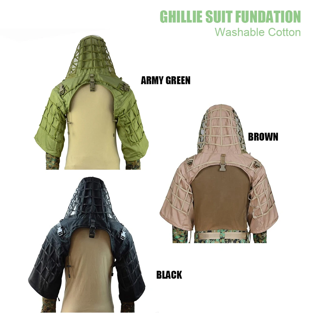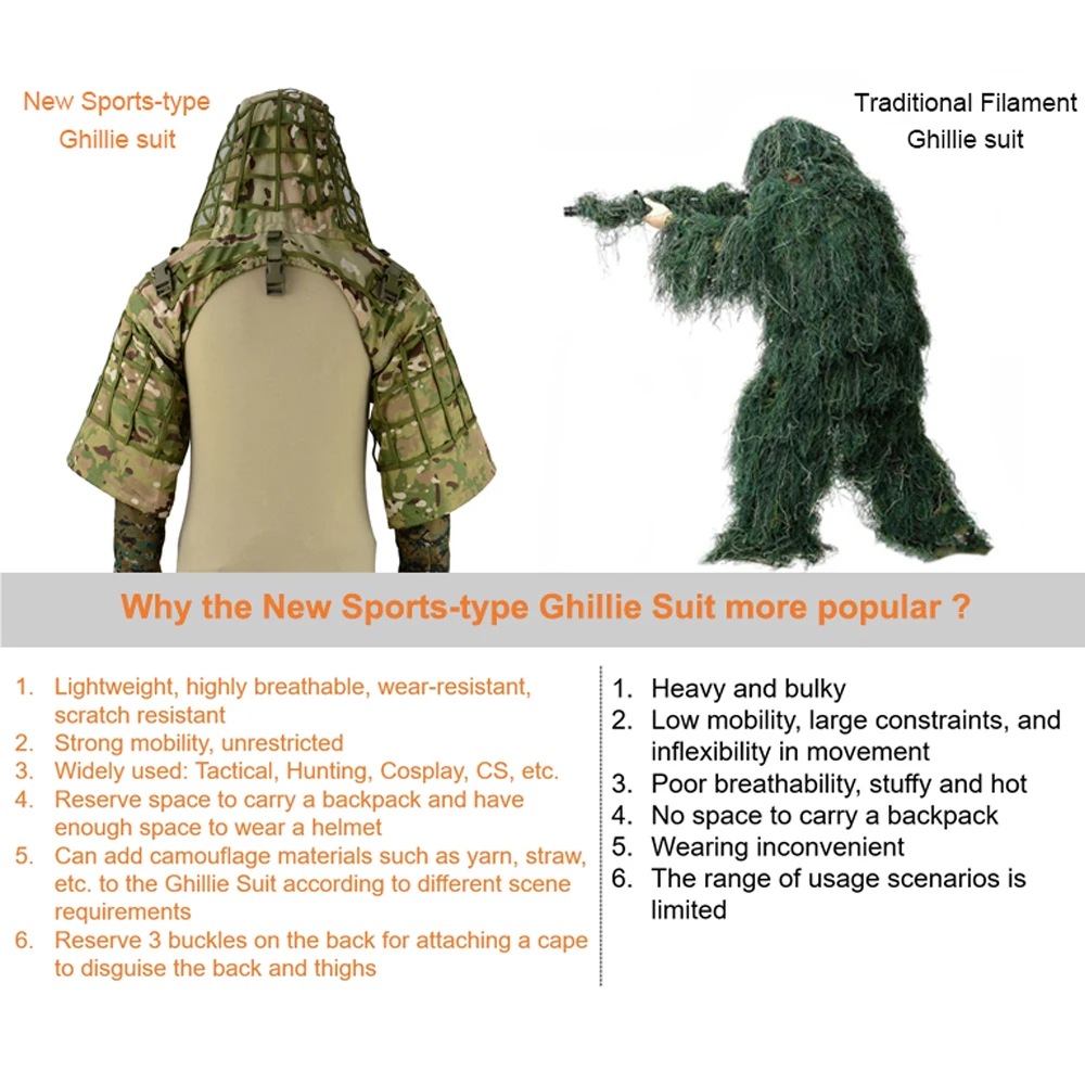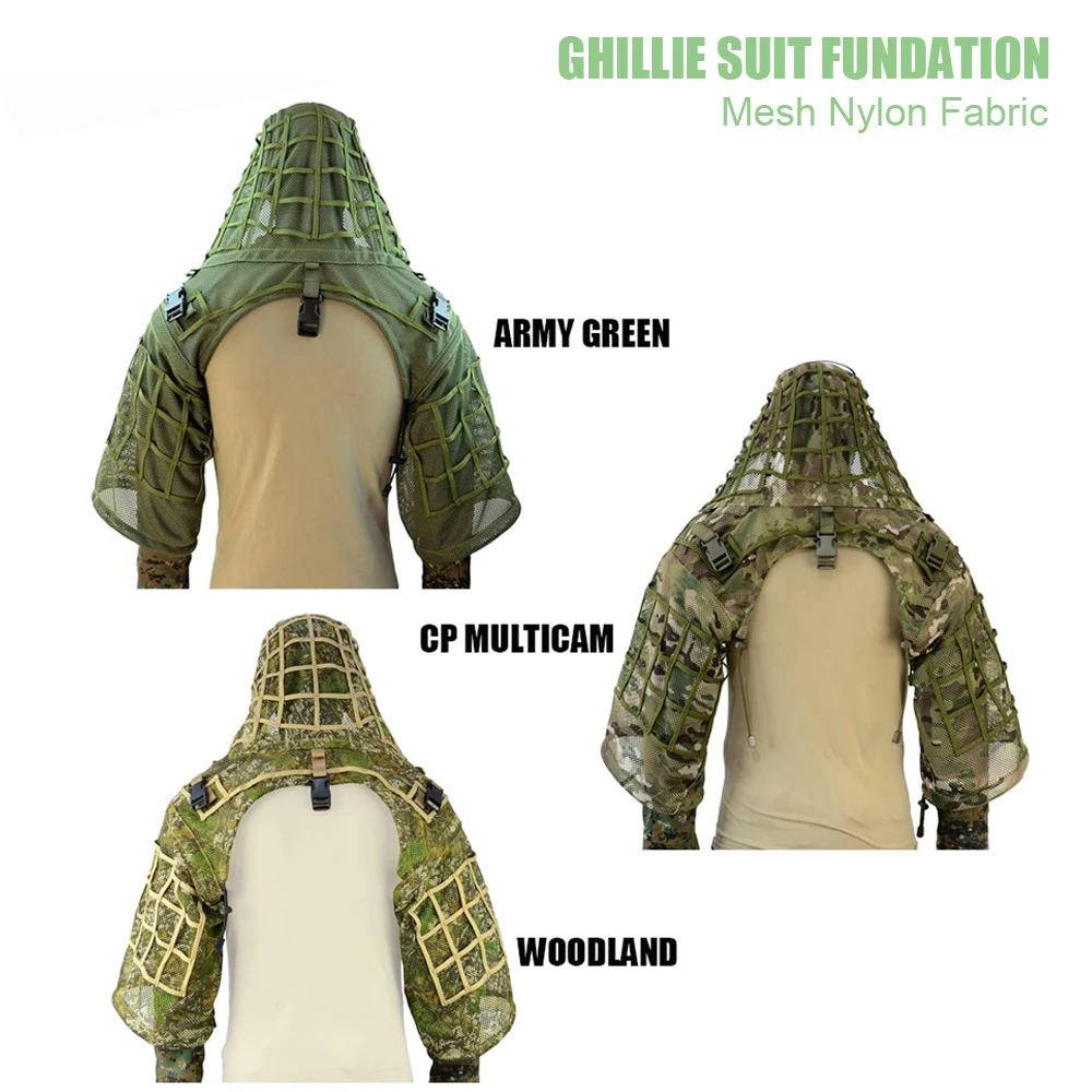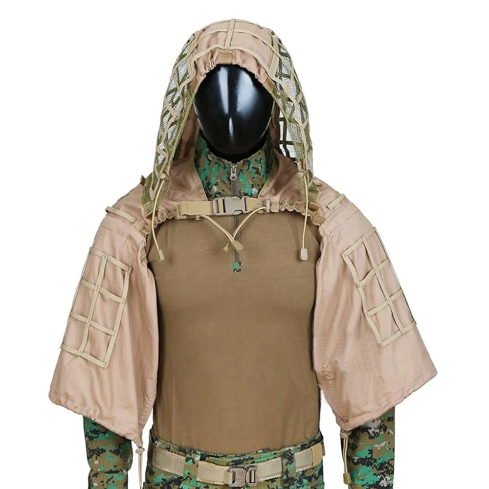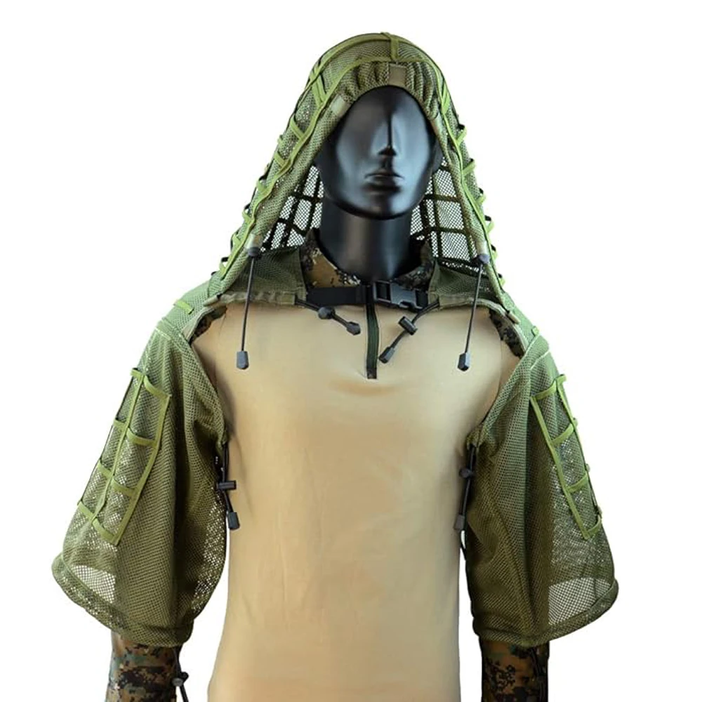 Breathable Ghillie Suit Foundation, Ghillie Poncho, Camouflage Hunting Ghillie Base, Ghillie Cape Sniper Viper Hood for Airsoft