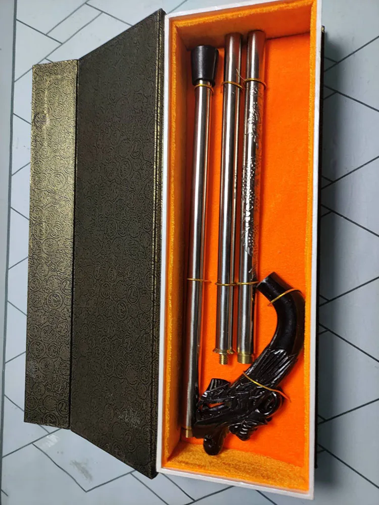 Bastón para caminar de titanio para senderismo al aire libre, muleta para caminar, mango de cuerno de vaca, puede plegar, 3 secciones