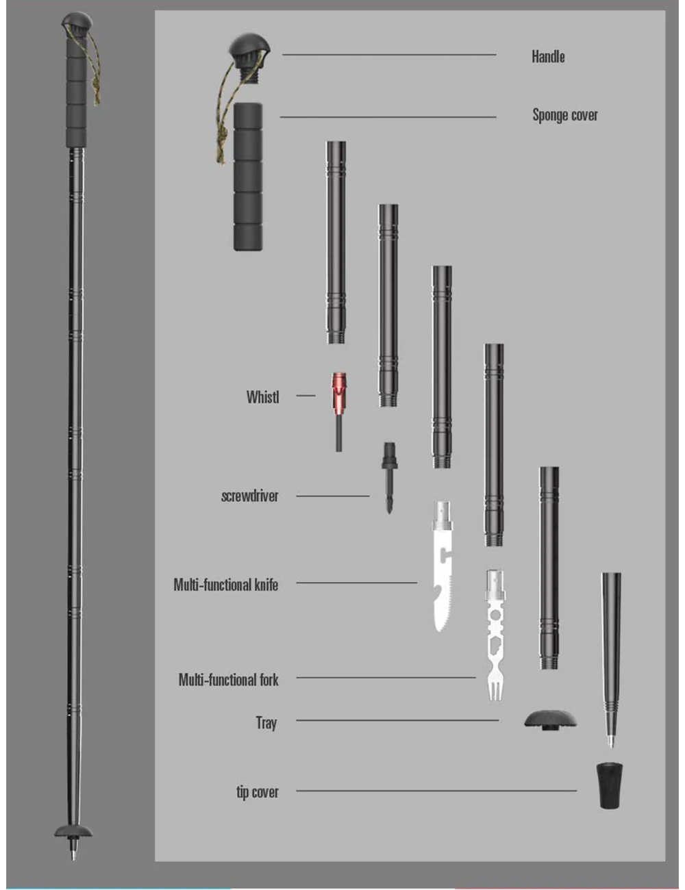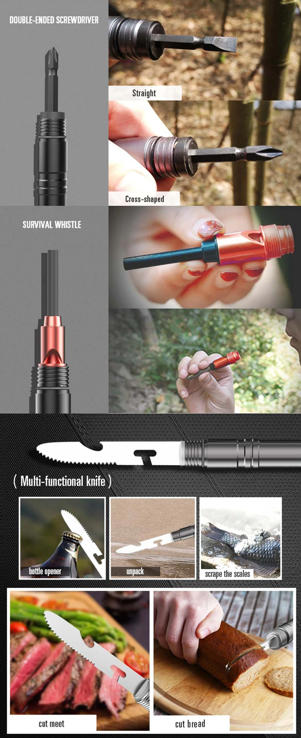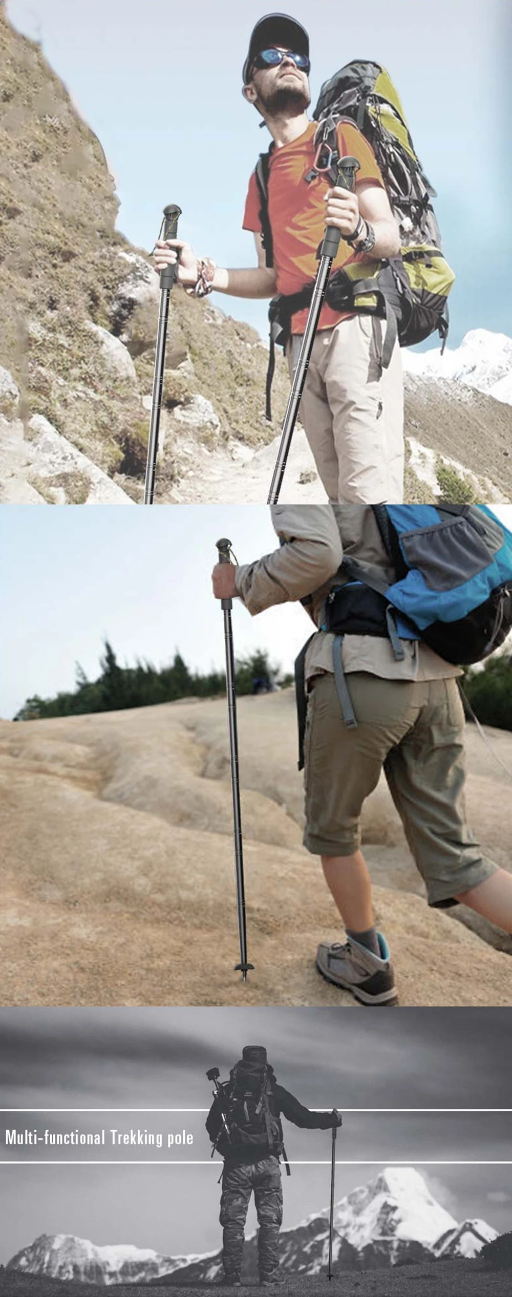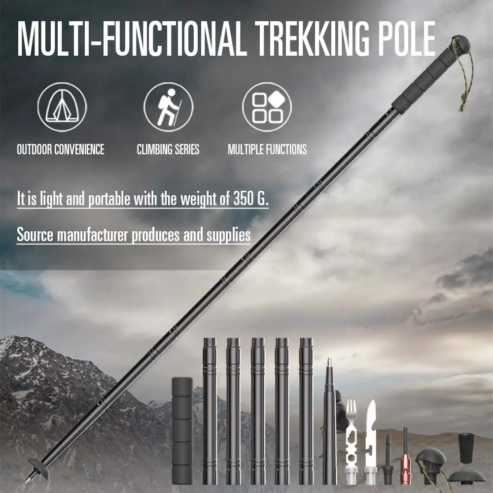 Bastones de Trekking multifunción equipo exterior supervivencia bastón de senderismo poste ultraligero 6063 aleación táctico bastón selfie Stick