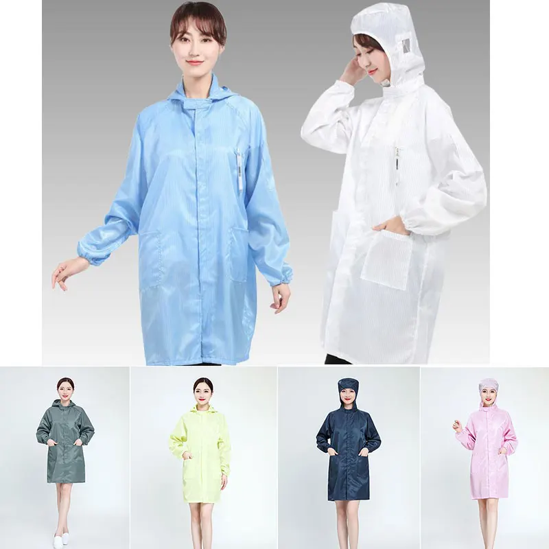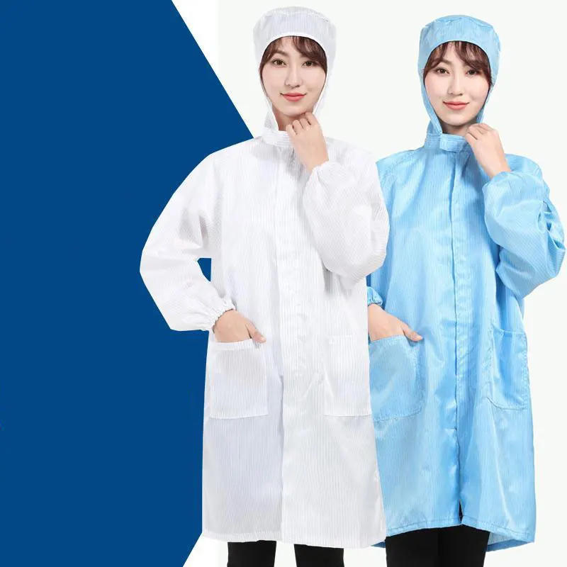 Bata antiestática blanca y azul, traje de Sala Limpia, ropa de trabajo antipolvo, traje protector de una pieza, uniforme de fábrica química de pintura en aerosol