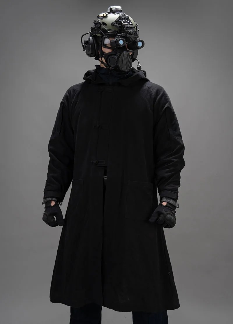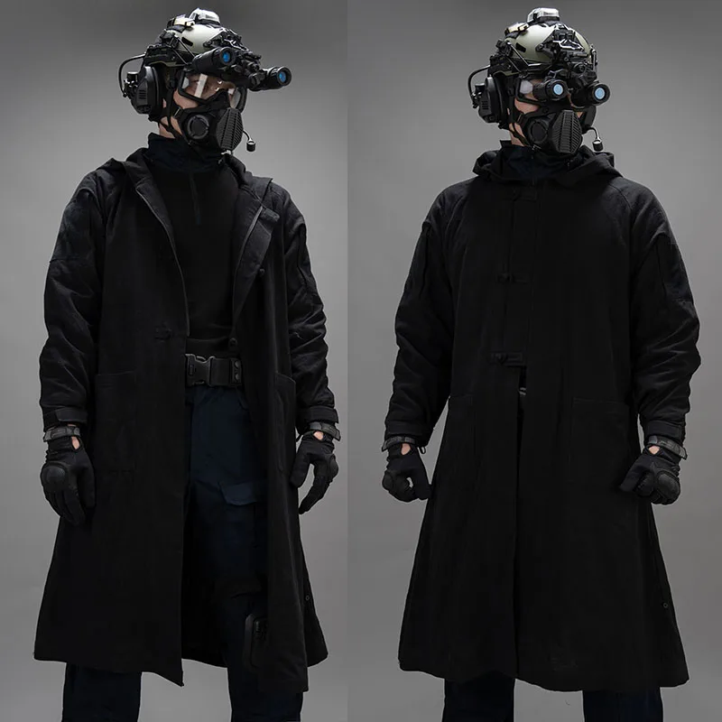 Bata de laboratorio táctica Camisa larga de crepé de lino sintético de algodón Chaqueta tipo mono Vestido largo