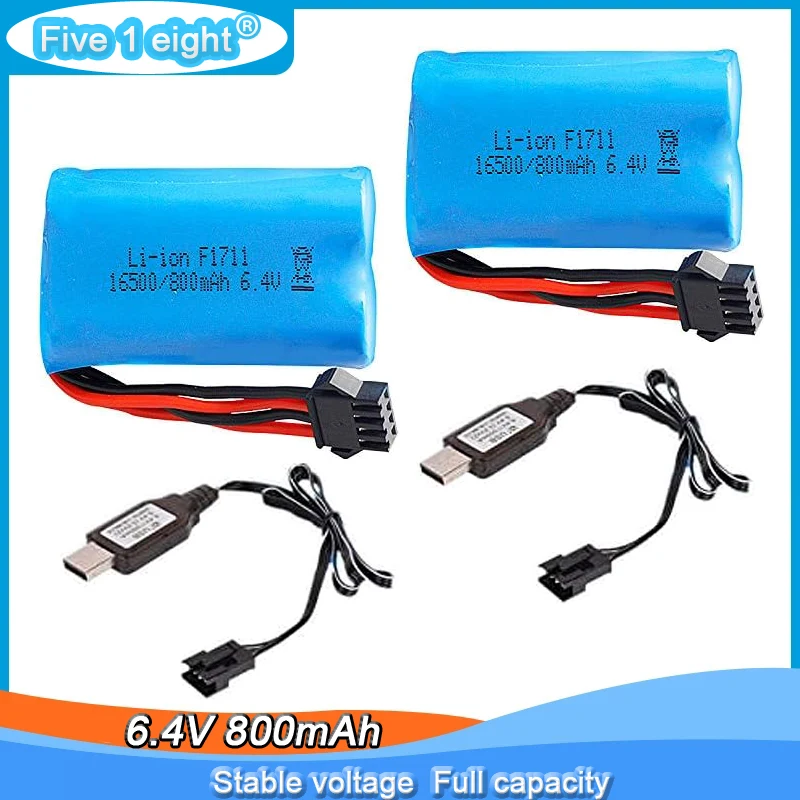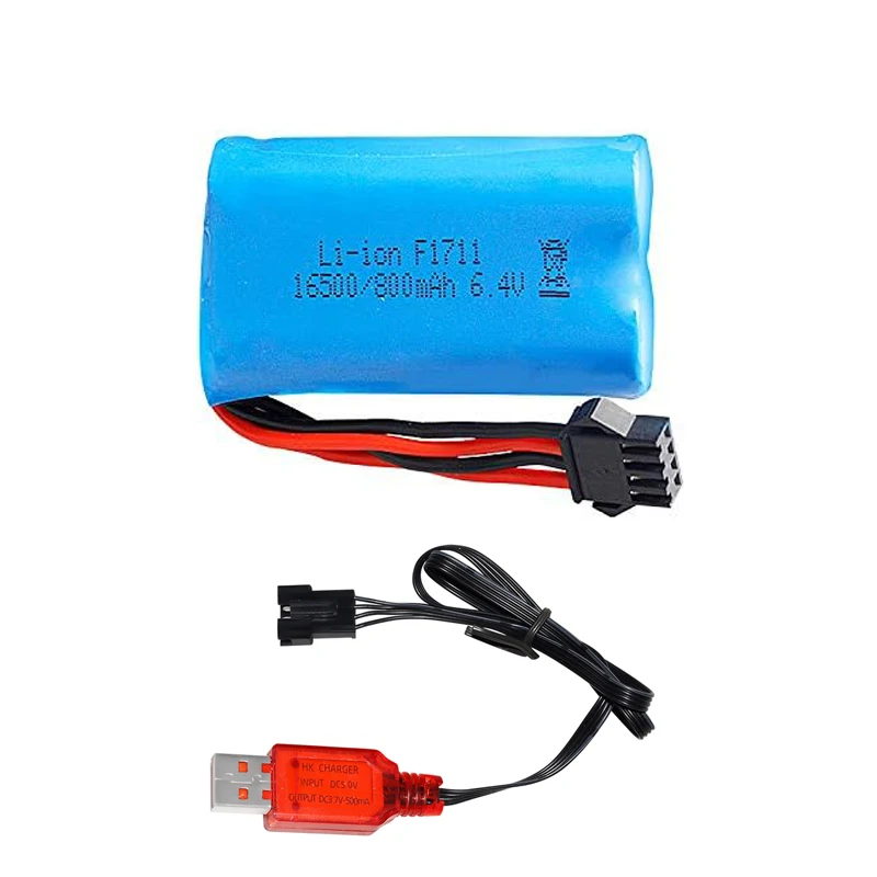 Batería de iones de litio de 6,4 v, 800mAh, 20C, 16500, SM-4P, enchufe inverso con cargador para wltoys 18628, 18629, 18428, 18429, 1/18, camión RC de alta velocidad