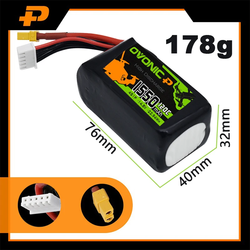Batería Lipo de 1300/1550mAh, 100/120C, 4S, 14,8 V, para helicóptero RC, cuadricóptero, FPV, piezas de Dron de carreras, batería recargable de 4S