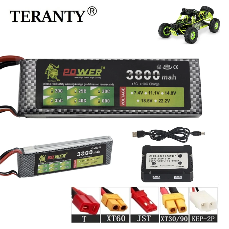 Batería Lipo 2S de 7,4 v y 3800maH con Dean T/XT60 para coches teledirigidos, barcos, juguetes, cuadricóptero, pieza de repuesto, batería recargable 2s de 7,4 v
