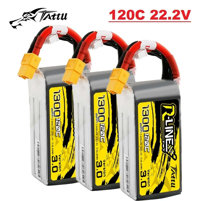 Batería LiPo 3 piezas TATTU R-LINE 3,0 22,2 V 1300mAh 120C para helicóptero RC Quadcopter FPV Racing Drone, piezas con batería XT60 6S