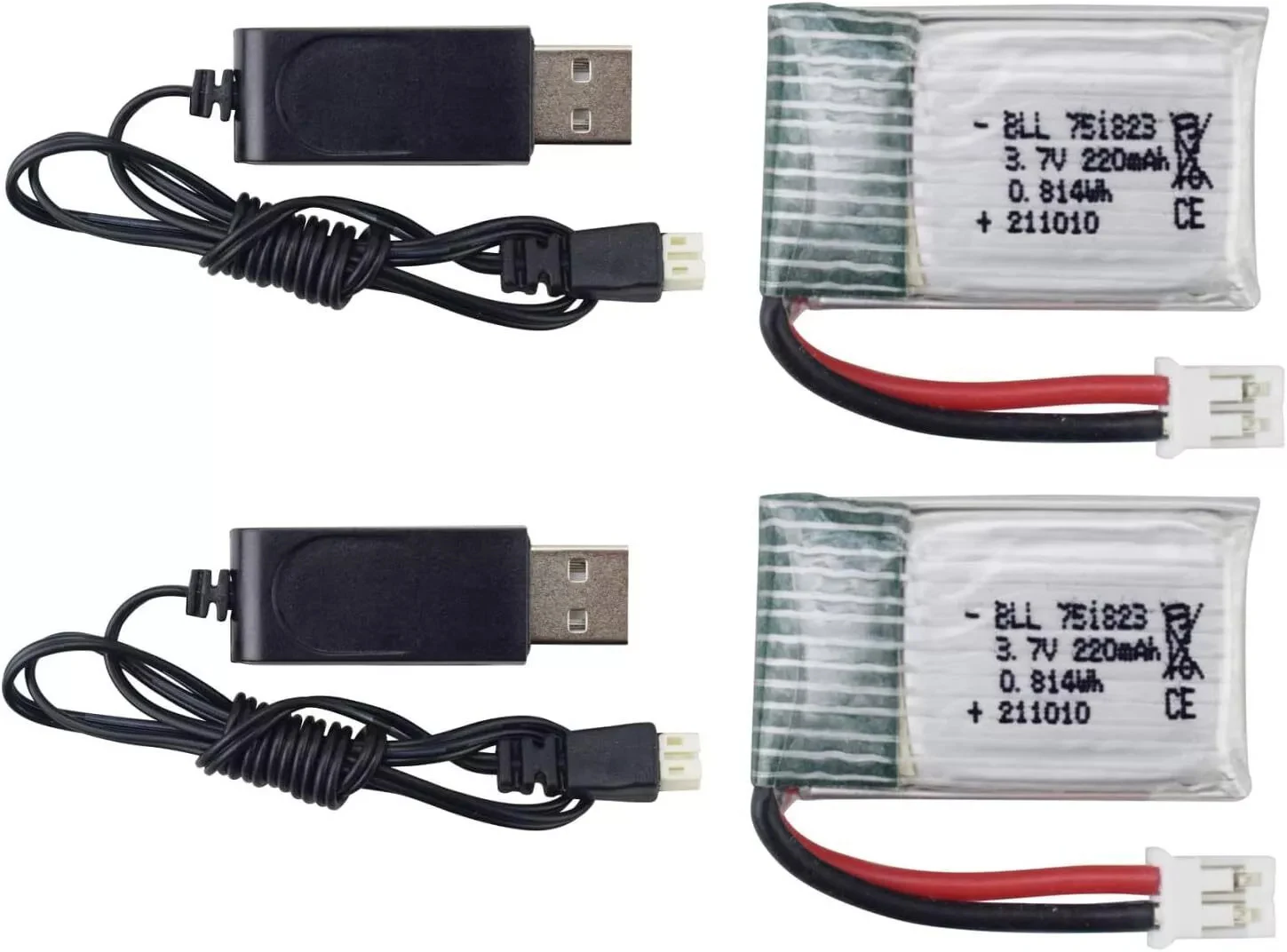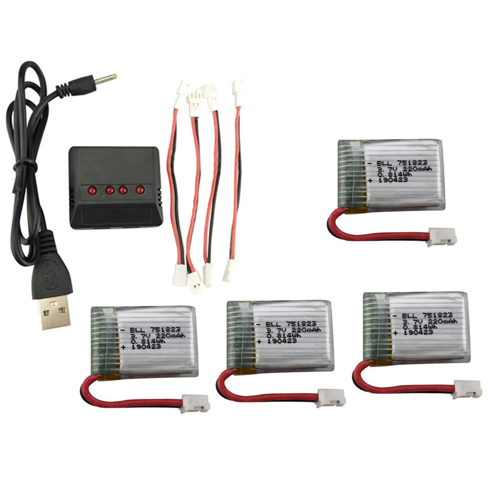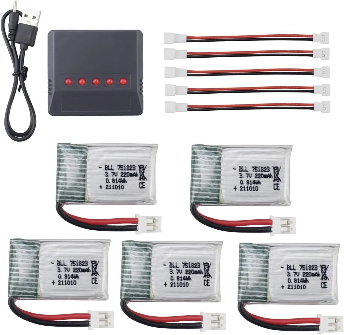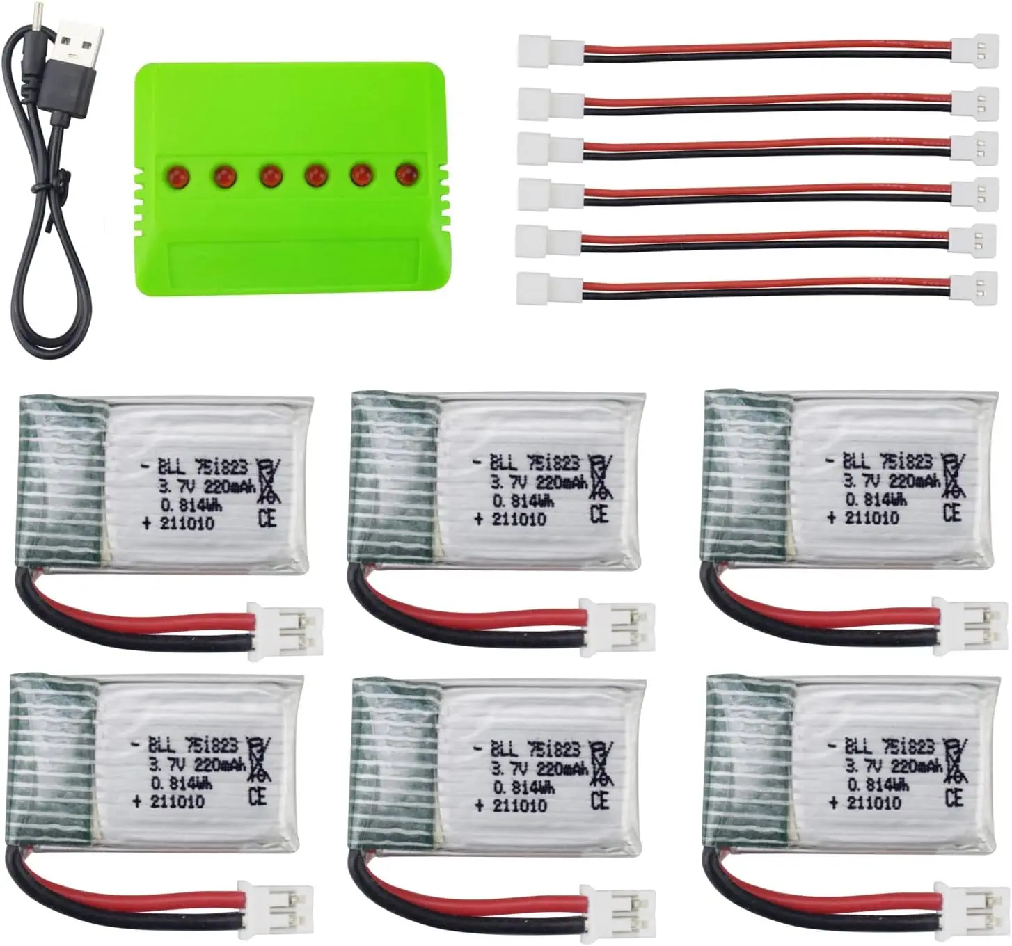 Batería de litio de 3,7 V y 220mAh y cargador de equilibrio 6 en 1 para E010 E010C E011 E011C E013 GoolRC T36 NINHUI NH010 F36 H36 HS210 SANROCK GD65A ATOYX AT-66 batería de Dron RC de cuatro ejes