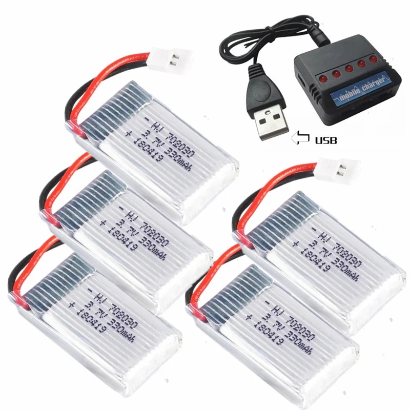 Batería Lipo de 3,7 V 330mAH y cargador para Udi U816 U830 F180 E55 FQ777 FQ17W Hubsan H107 Syma X11C FY530 RC Drone 3,7 V