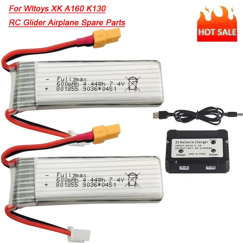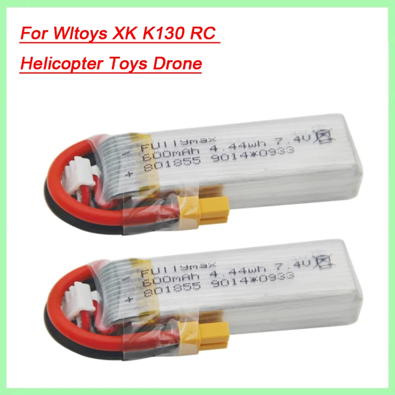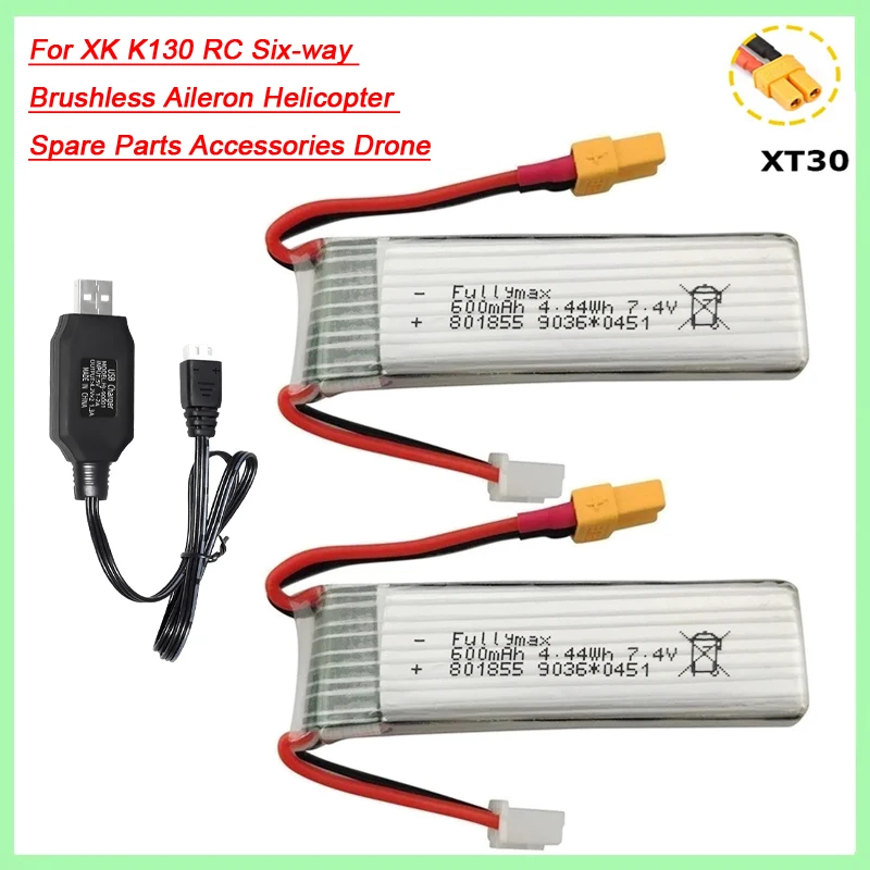 Batería Lipo de 6 vías sin escobillas para helicóptero XK K130 RC, accesorios de repuesto para helicóptero, 7,4 V, 600mAh, 45C, 801855, enchufe XT30
