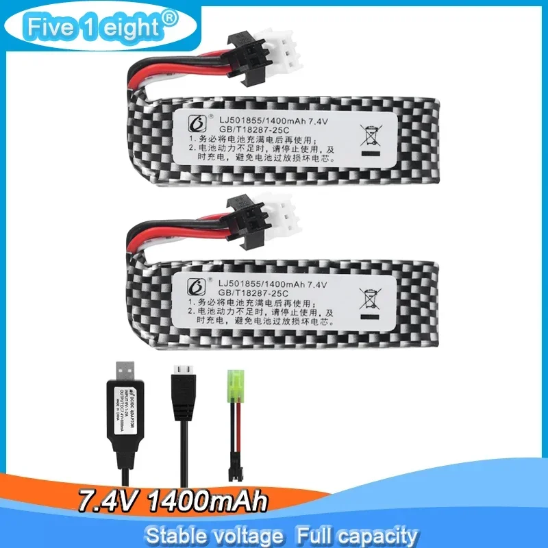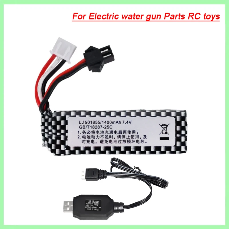 Batería Lipo de 7,4 V, 1400mAh, 25C para pistola de bomba de agua, juguete eléctrico RC, pistola de Gel Airsoft, STD-X2, bola de salpicaduras automática