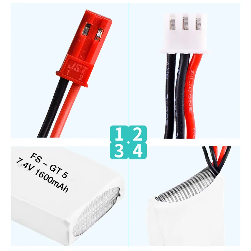 Batería Lipo de 7,4 V, 1600mAh para transmisor Flysky FS-GT5, modelos RC, piezas de helicóptero para MC6C MCE7 con enchufe JST, batería de 7,4 V