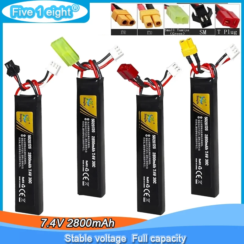 Batería Lipo de 7,4 v, 2800mAh, T /SM /XT30 /Mini enchufe Tamiya para pistola de agua Mini Airsoft BB, pistola de aire eléctrica, piezas de pistolas de juguete
