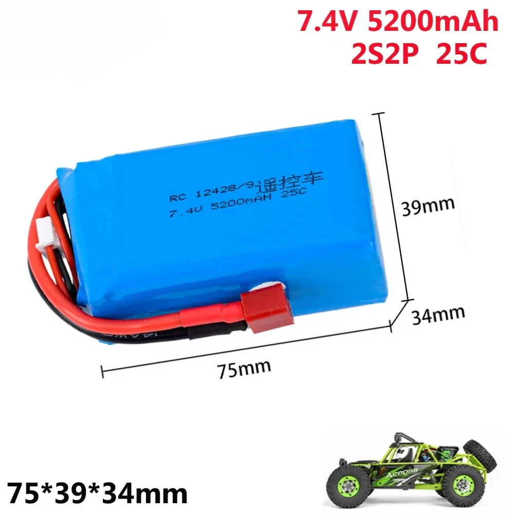 Batería de litio de 7,4 V 25C 2s2p 5200mAh se aplica para Weili 12428 12429 batería de coche de control remoto de potencia de escalada