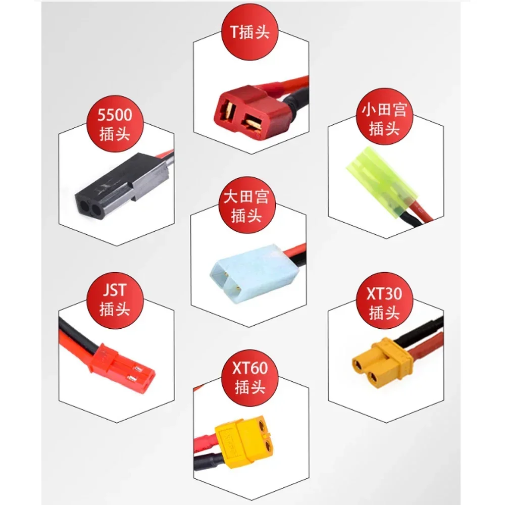 (1)Este enlace esEnchufe de cabeza en T y conector de cable 3SEnchufe, Si necesita otro conector (JSCabezal T/XT30 / TEnchufe u otro enchufe), Dénos el mensaje cuando haga el pedido, por favor,Haremos juntas adecuadas para usted de forma gratuita,