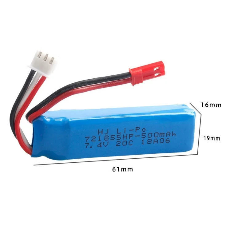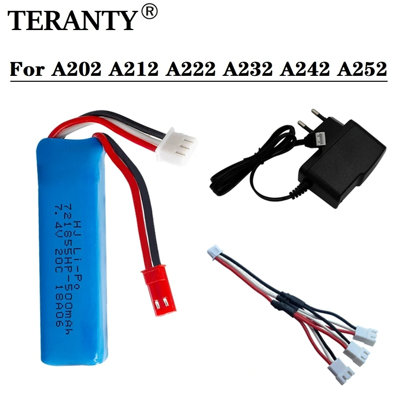 Batería Lipo de 7,4 V y 500mAh, cargador de batería para WLtoys A202, A212, A222, A232, A242, A252, 4WD, control remoto, coches de juguete de alta velocidad