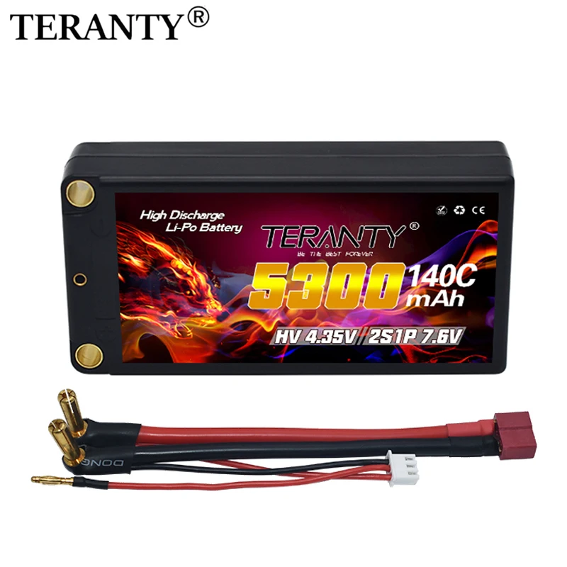 1/2PC TERANTY 7,6 V 140C 2S 5300mAh RC LiPo Batería Estuche rígido con enchufe Deans a bala 5mm