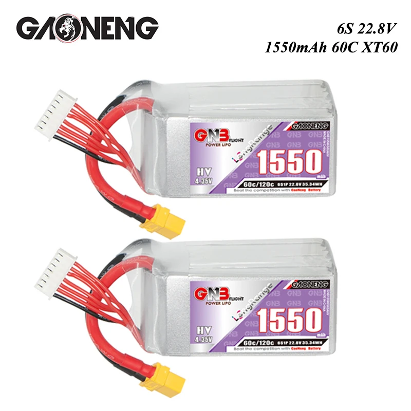 Batería Lipo para coche, camión, Buggy, avión, FPV, Drones, piezas de RC, GNB HV 6S, 22,8 V, 1550mAh, 60C/120C, 22,8 V, 2 piezas, original