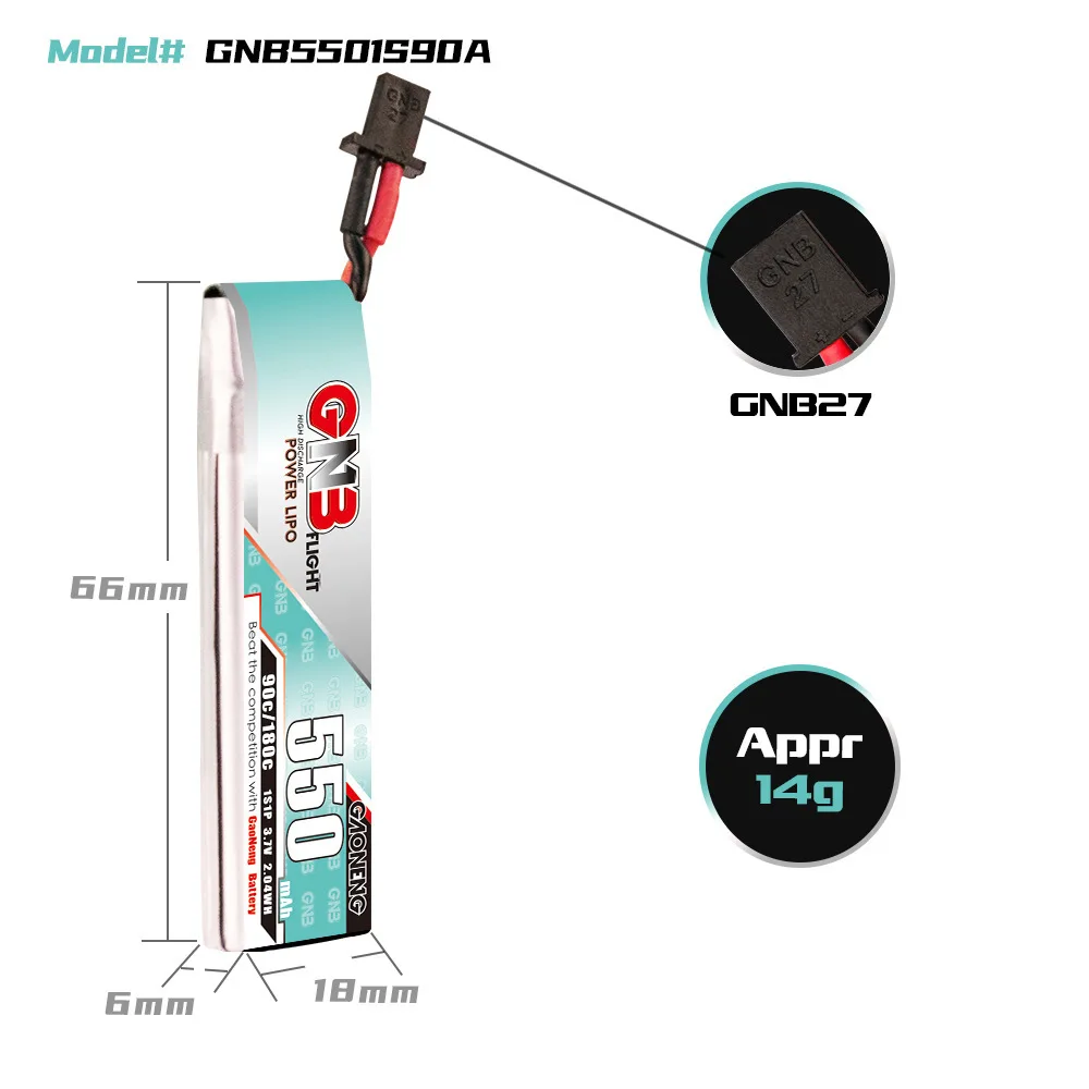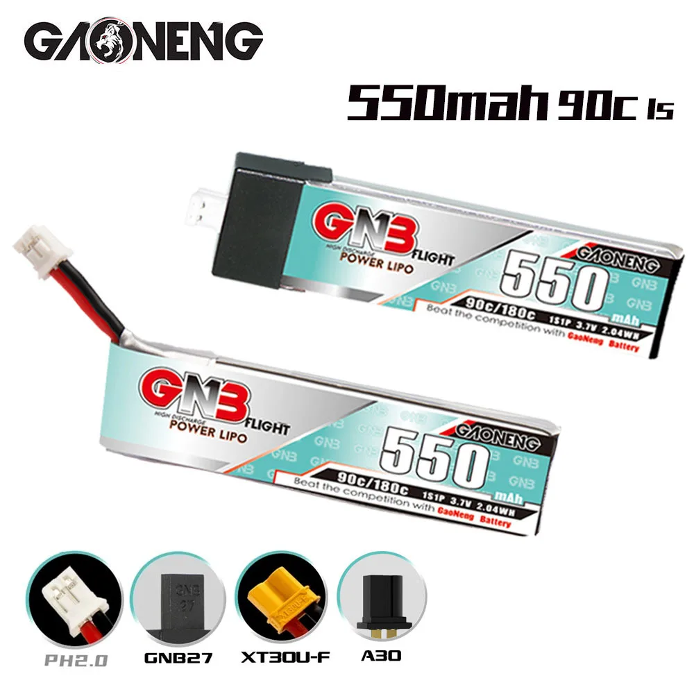 Batería Lipo para cuadricóptero teledirigido, pieza de repuesto para Dron de carreras, batería recargable de 550 v, máx. 3,7 mAh, GNB 1s, 90c/180c