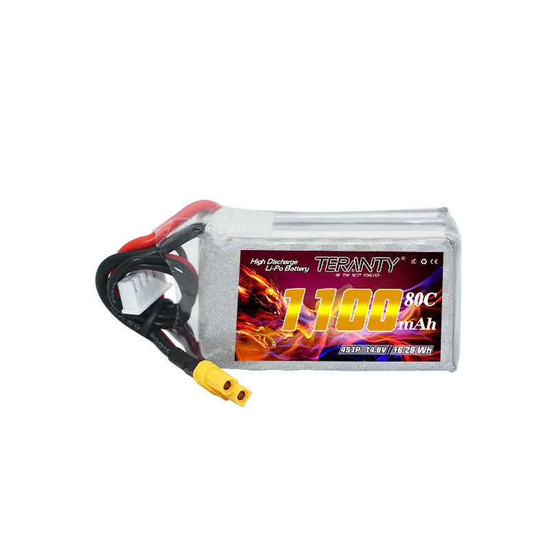 Specification:Brand: TERANTYVoltage: 14.8VCapacity: 1100mAhDischarge Rate: 80C Continual / 160C BurstConfiguration: 4S1PConnector Type: XT30PlugBalancer Connector Type: JST-XHLength: 64mmWidth: 30mmHeight: 31mmBattery Weight: 98g