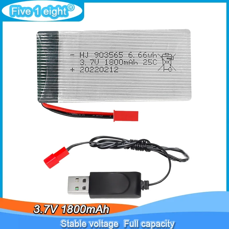 Batería Lipo recargable con enchufe JST, 3,7 V, 1800mAh, 25C, con cargador USB para JJRC A6 H68 RC Drone, piezas de repuesto de cuadricóptero