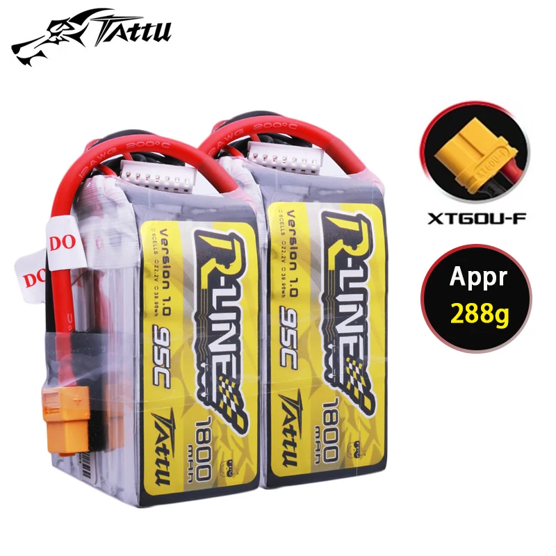 Batería LiPo TATTU-R-LINE 1,0 1800mAh 22,2 V 95C 6S con enchufe XT60 para helicóptero RC Quadcopter FPV Racing Drone Parts
