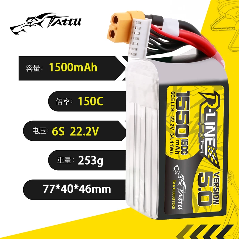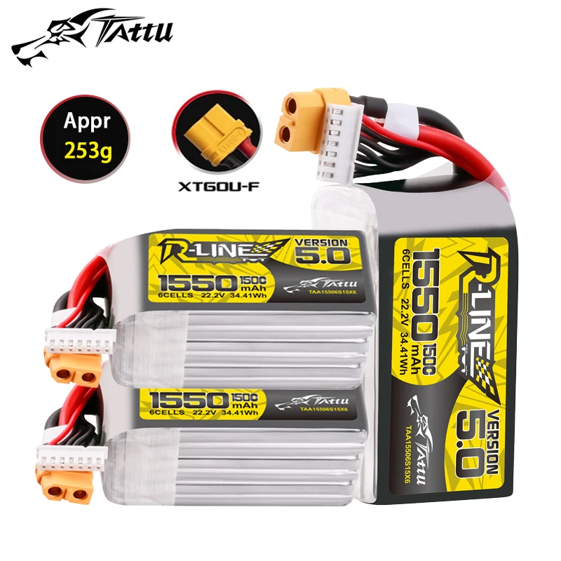 Batería LiPo TATTU-R-LINE 5,0 22,2 V 1550mAh 150C con enchufe XT60 para helicóptero RC Quadcopter FPV Racing Drone Parts 6S