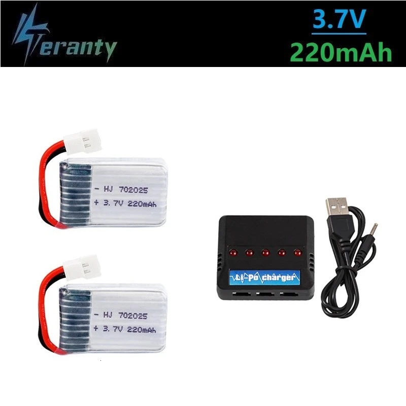 Batería Lipo y cargador de 3,7 V y 220mAh para batería recargable de 3,7 v para X4 X11 X13 RC Drone piezas de repuesto de cuadricóptero 702025