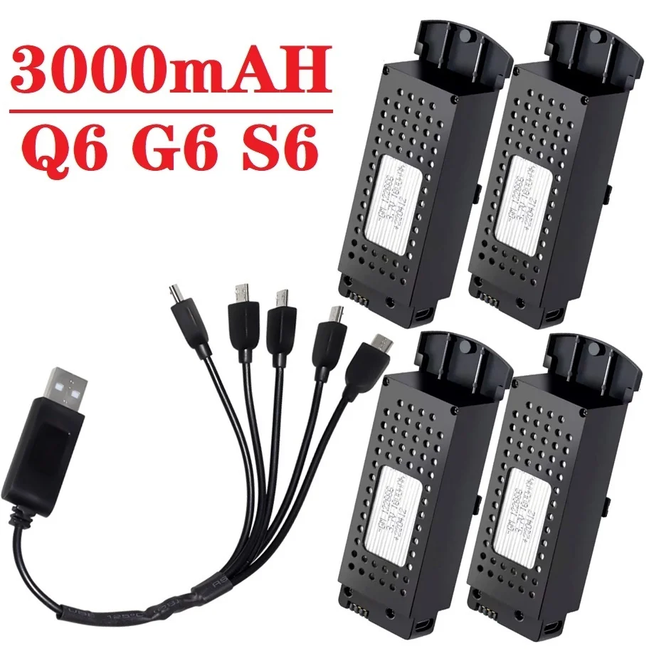Batería y cargador recargables Q6 3,7 V 3000mAh para Q6 G6 S6 8K recambios de cuadrirrotor RC para batería Lipo G6 Pro