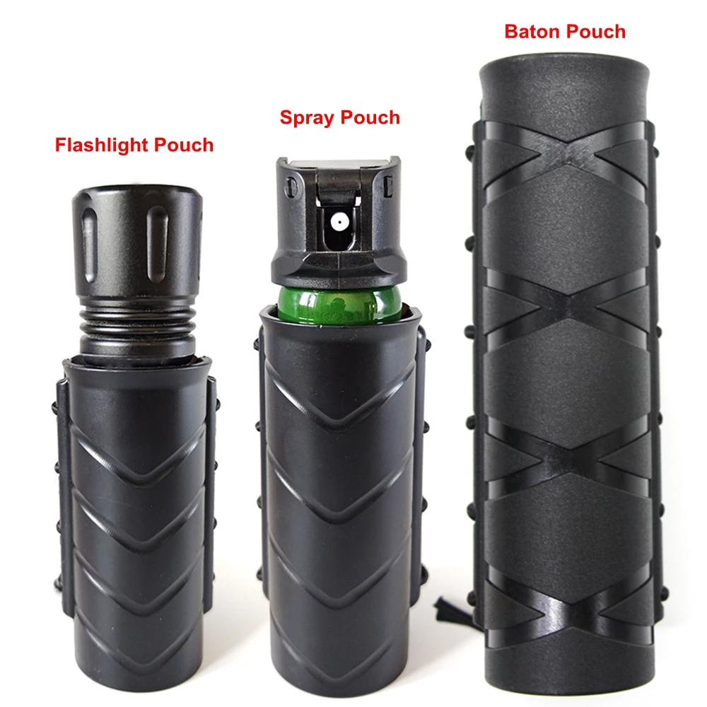 Baton-bolsa táctica para linterna giratoria de 360 grados, bolsa de pulverización al aire libre, Clips Molle para chaleco, funda telescópica para cinturón de servicio