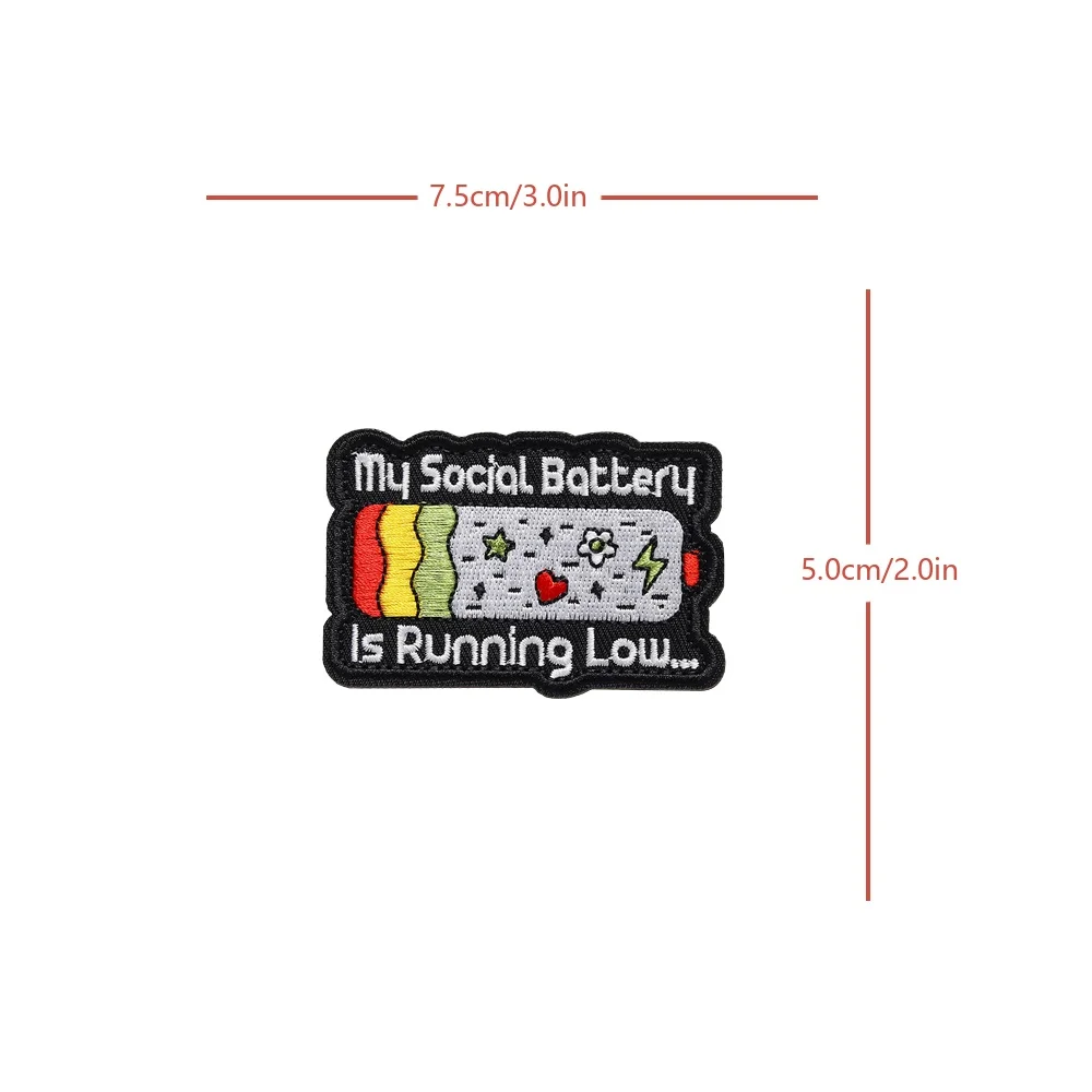 Battery Social Morale Fun Meme Velcros citas parche insignia táctica bordado gancho bucle sujetador para gorra Molle mochila Jeans