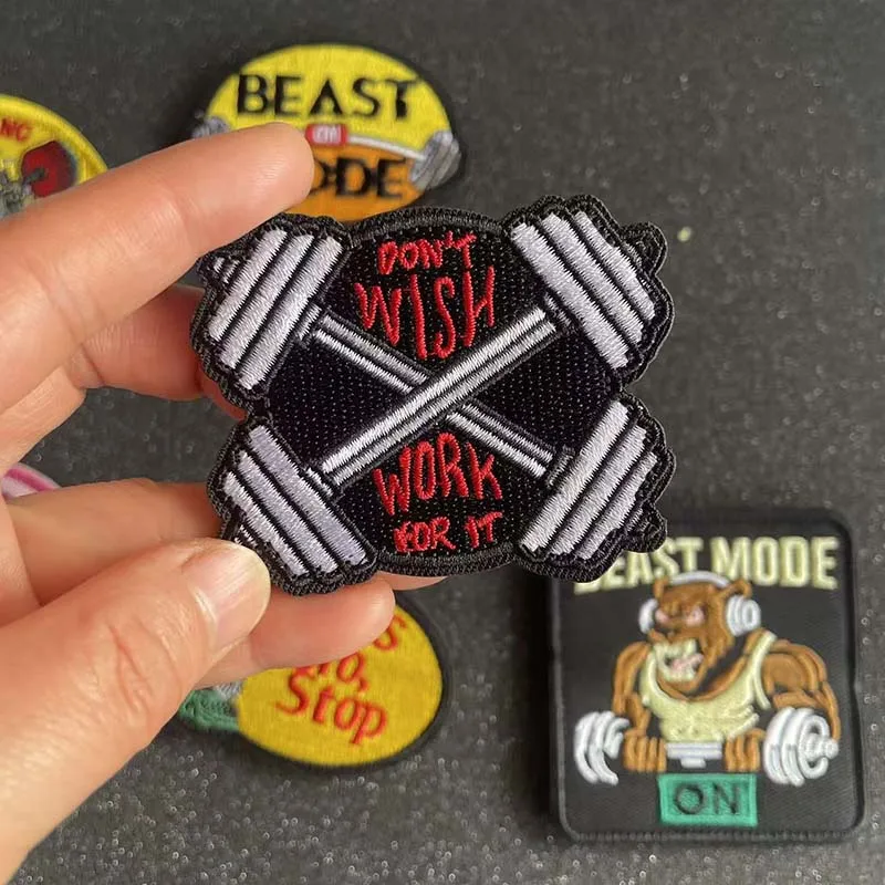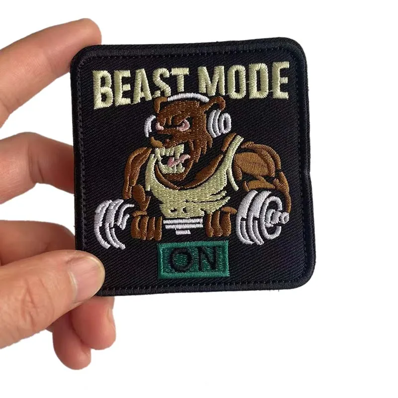 Modo de bestia, animales divertidos, mancuernas, Fitness, levantamiento de energía, parches de mochila táctica para sarga, apliques de ropa, insignia de moral bordada