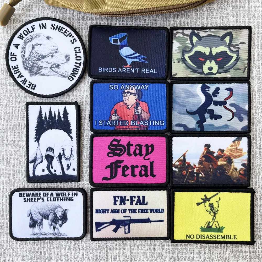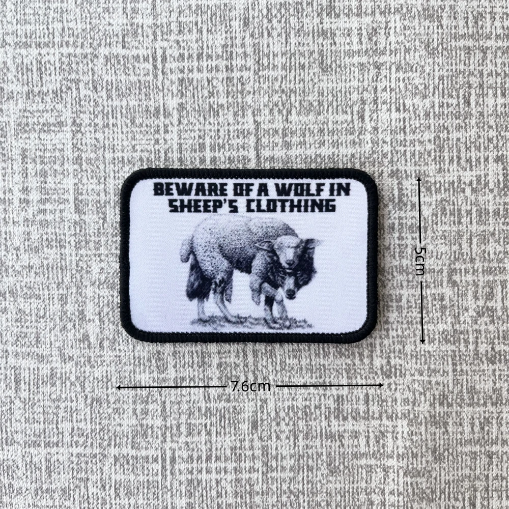 CUIDADO CON UN LOBO EN ROPA DE OVEJA Parches de insignia de moral Los pájaros tácticos no son reales Brazalete Mochila Etiqueta impresa