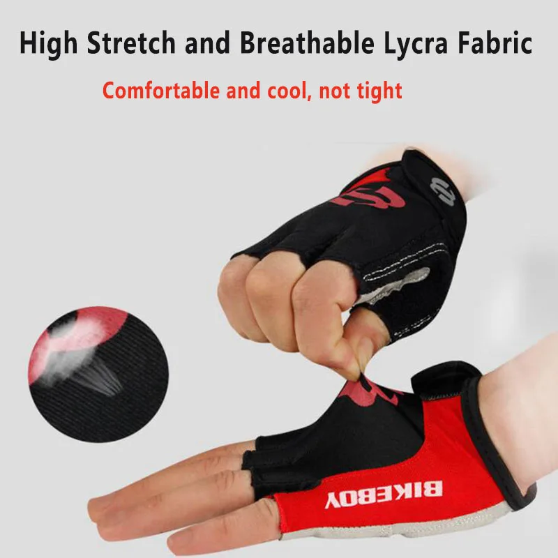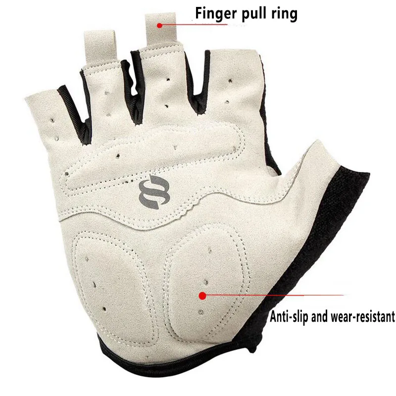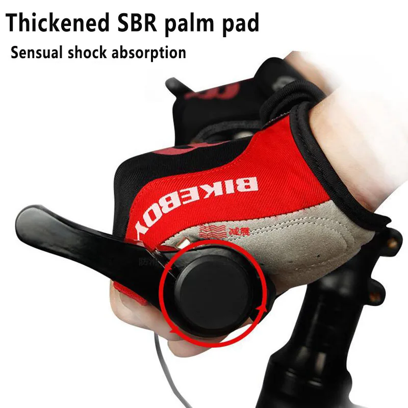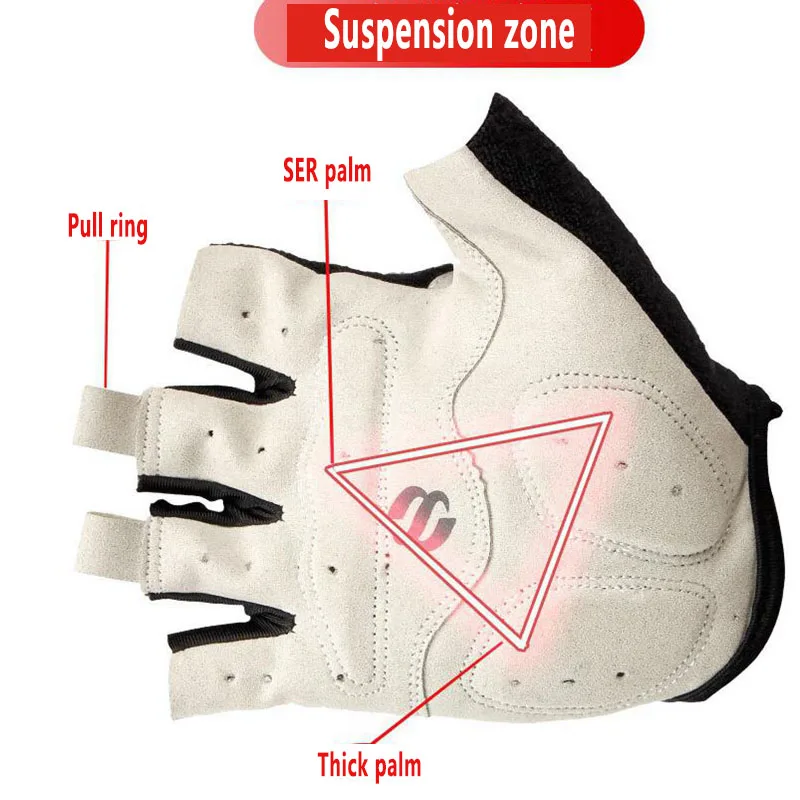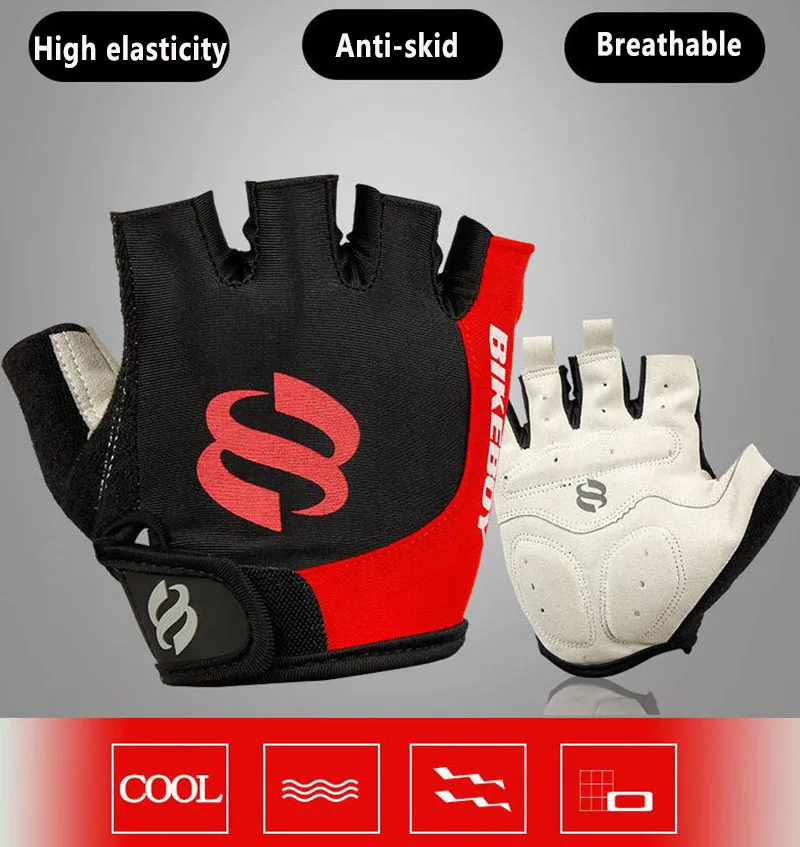 Color: gris, rojo, azul Talla: M, L, XL. Ancho de La Palma: M 8-8,5 cm L: 8,5-9 cm XL: 9-10cm El paquete incluye: 1 x guante de medio dedo para bicicleta
