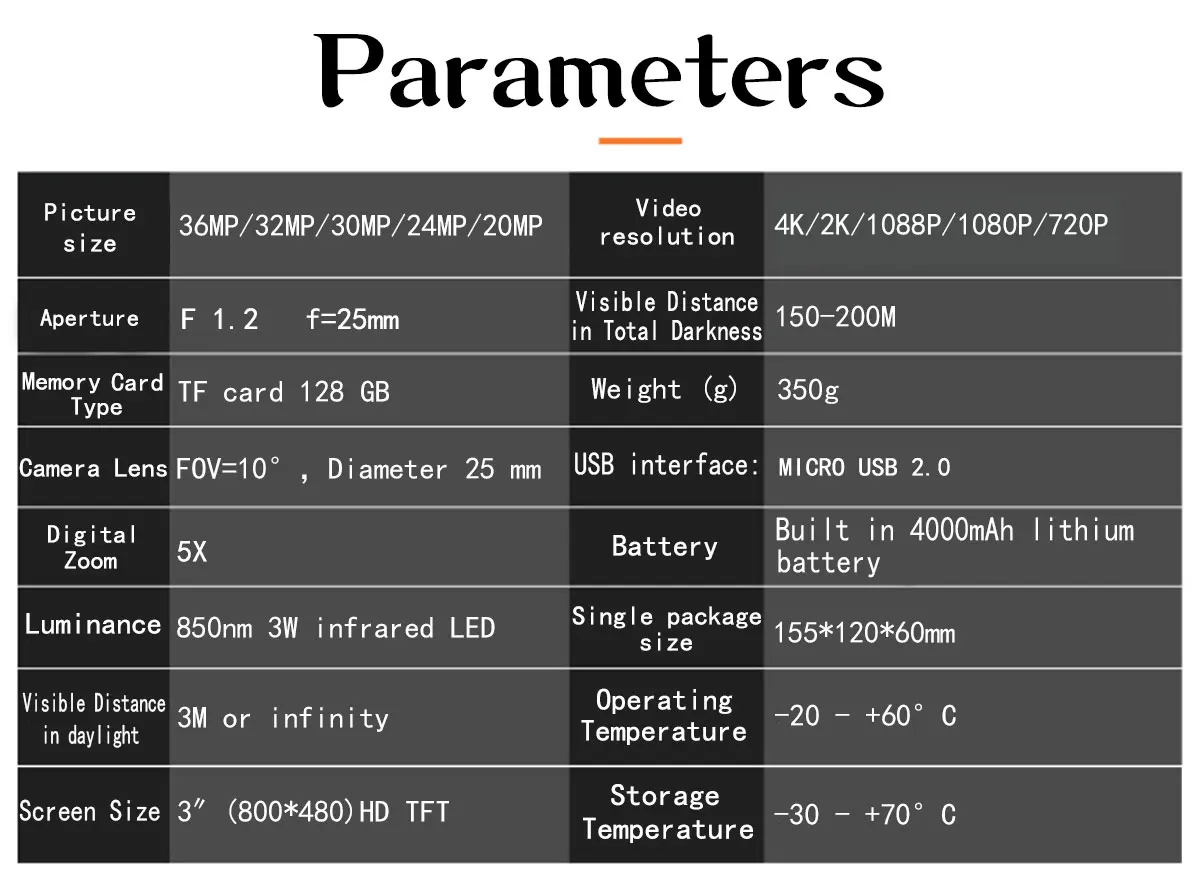 4. Ángulo de lente: FOV=10 °, diámetro: 25mm