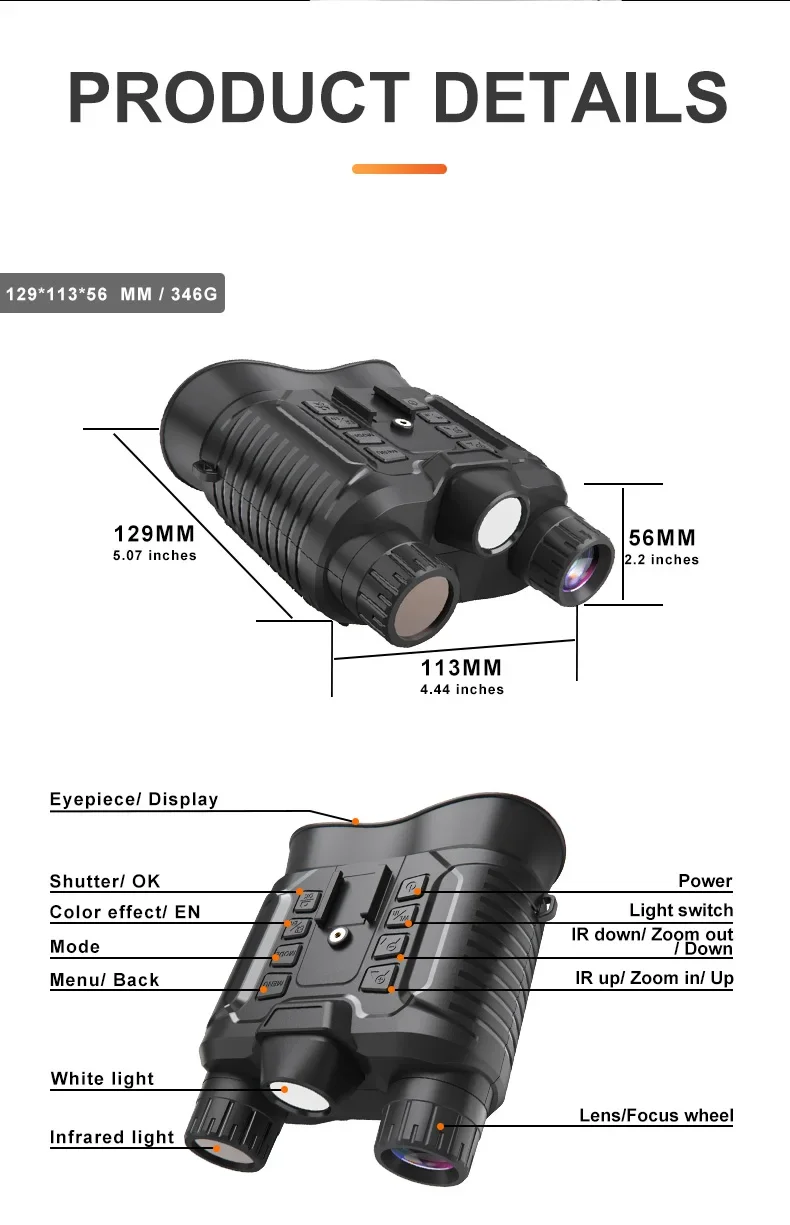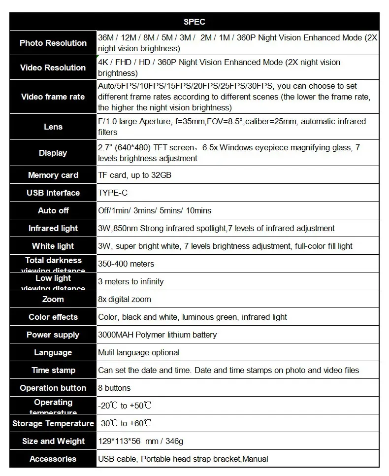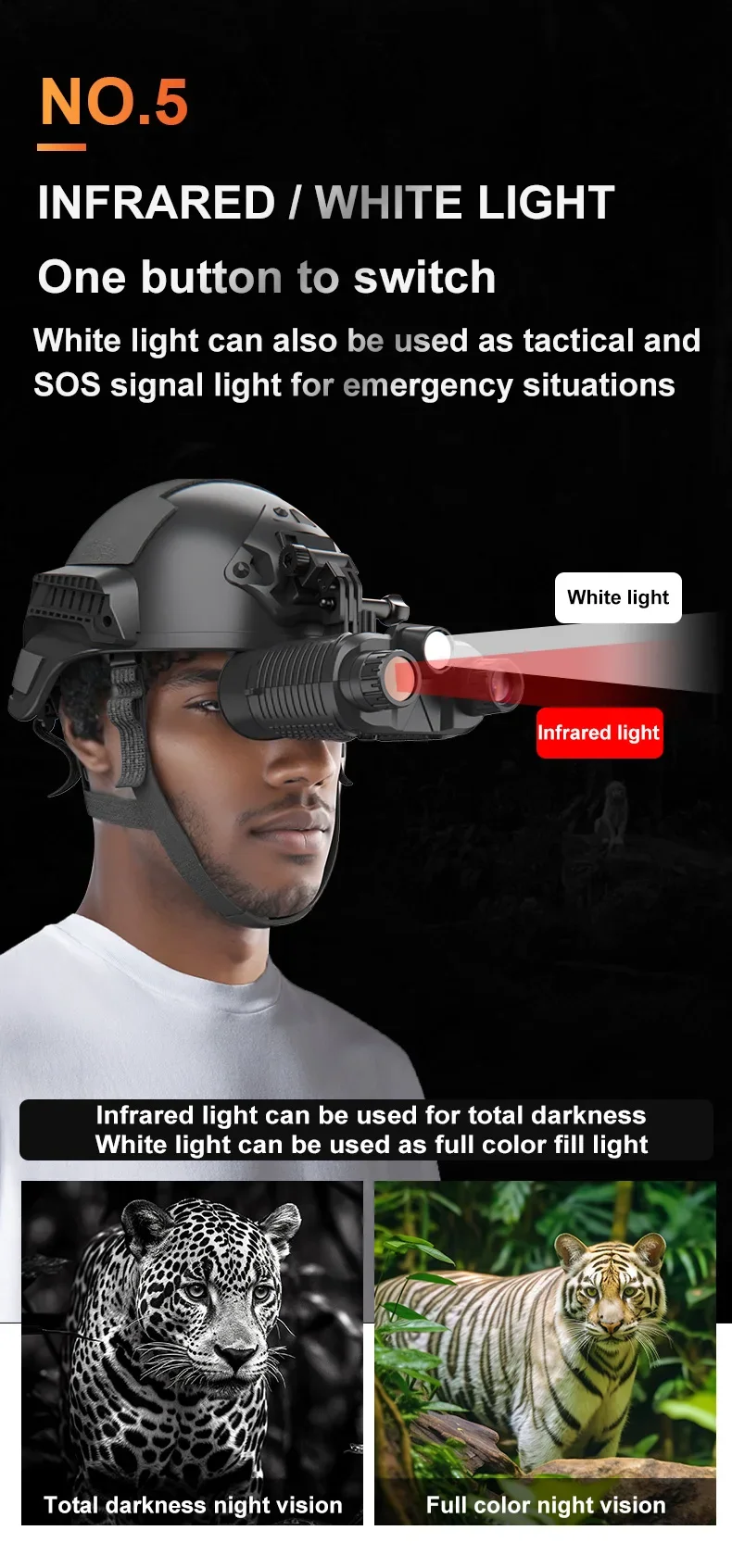 Binocular de visión nocturna con Zoom Digital 8X montado en la cabeza, pantalla de 2,7 pulgadas, vídeo 4K, luz IR/blanca de 36MP para vigilancia de seguridad nocturna