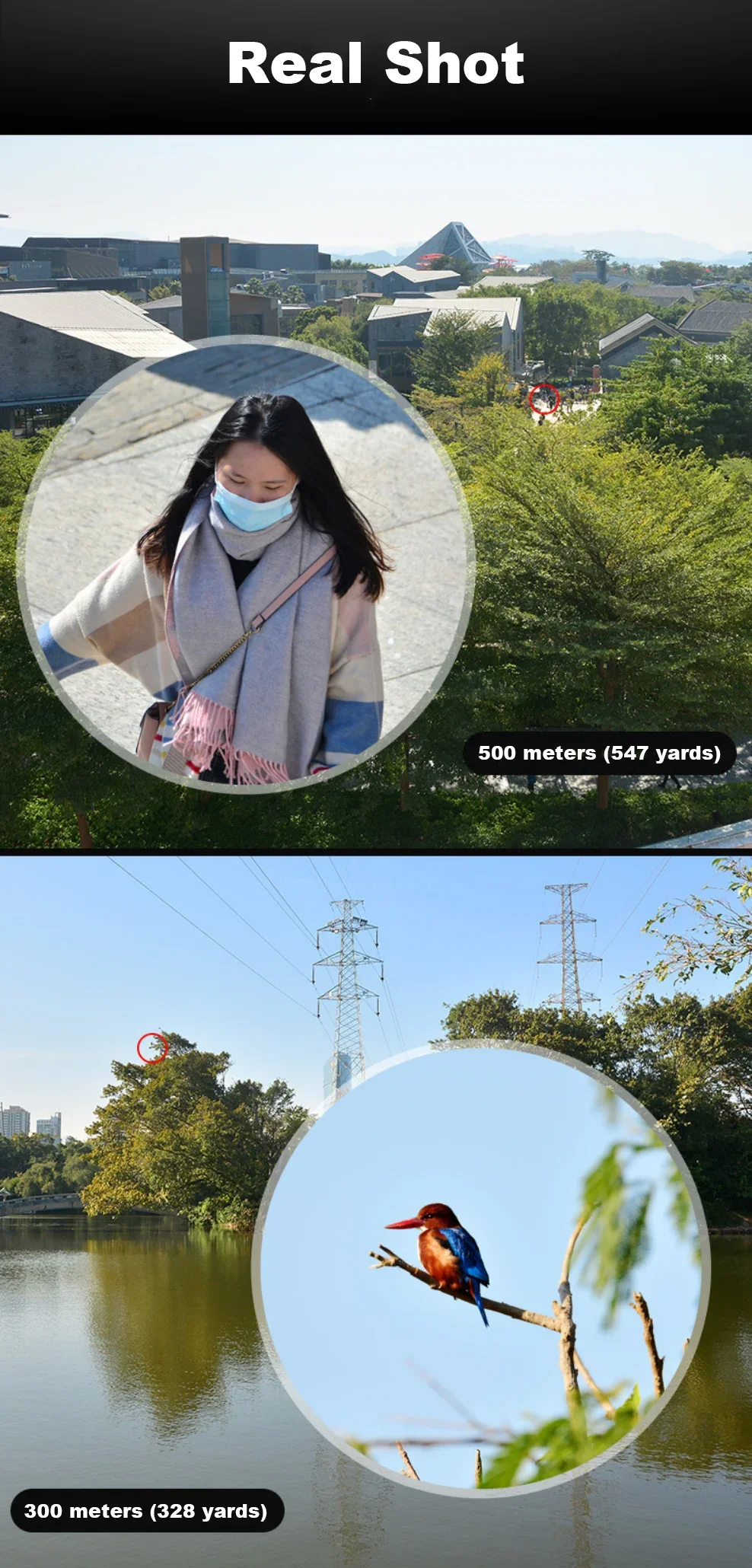 4. También puedes observar los pájaros claramente. 6. HD previene la vértigo debido al vidrio BAK4
