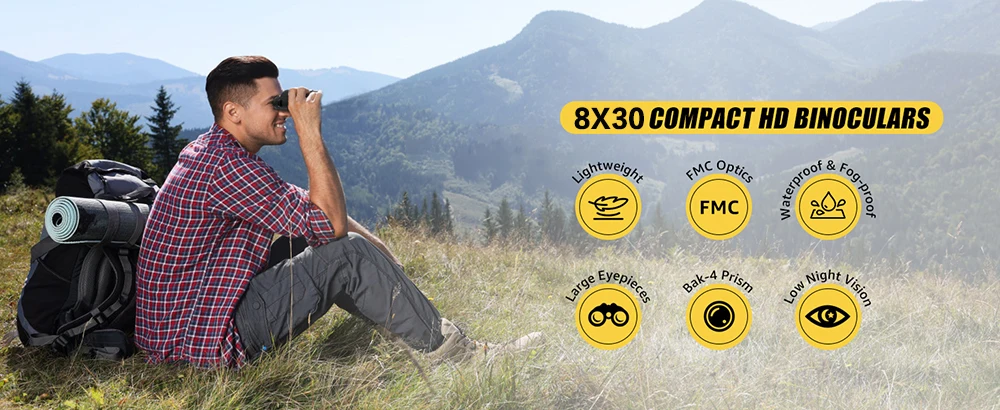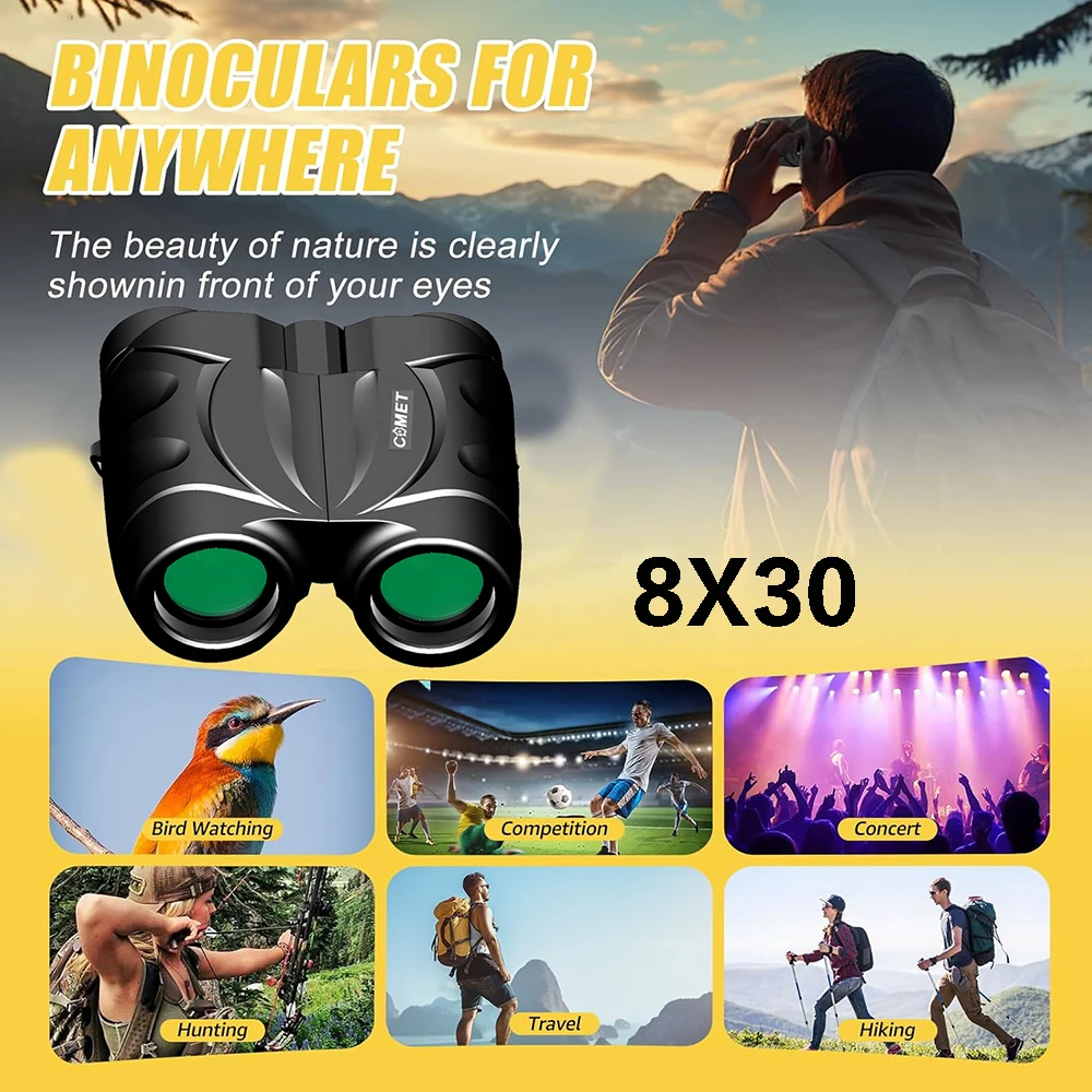 Binoculares compactos 8X30 para adultos y niños, ocular grande de 20mm, binocular impermeable, telescopio de fácil enfoque HD para viajes de caza