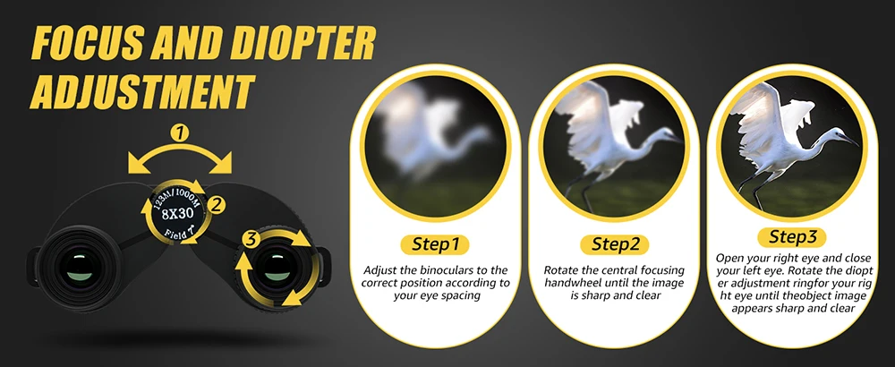 【BINOCULARES DE OCULAR GRANDE DE ALTA POTENCIDA】 Estos binoculares para adultos tienen un aumento de 8X, una lente objetivo de 30 mm y un amplio campo de visión, 123 m/1000 m, lo que le permite mirar más lejos y ver más amplio.Revestimiento con revestimiento de banda ancha FMC y prisma BAK4 premium, garantiza imágenes visosiblemente.