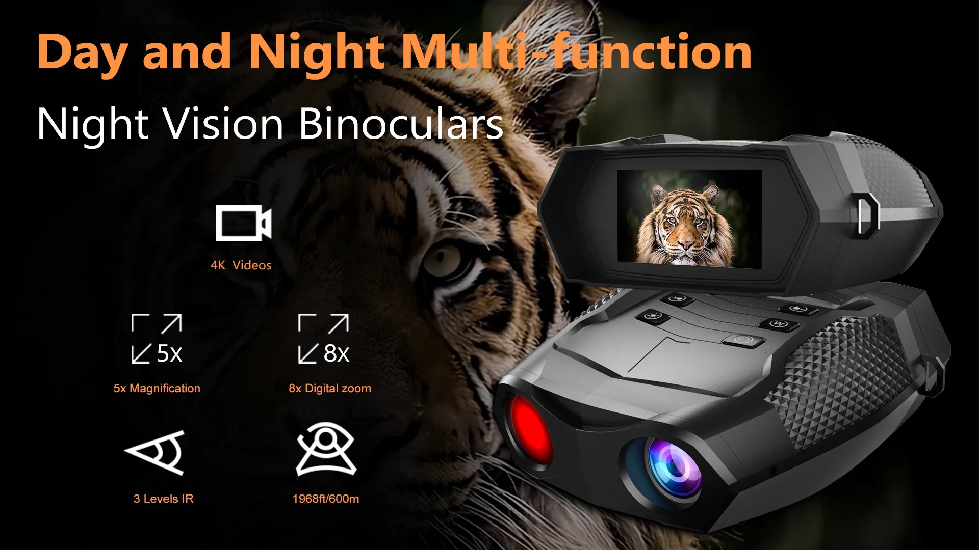 Binoculares digitales de visión nocturna infrarroja de 600m con batería de 5000mAh Telescopio de caza al aire libre a todo color 4K y 8 niveles de brillo