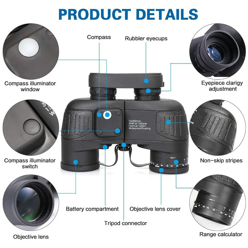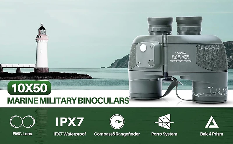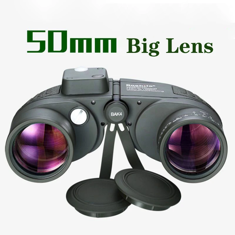 Binoculares marinos 10x50 con brújula de telémetro para adultos Lente FMC Binoculares de visión con poca luz impermeables a prueba de niebla para navegación